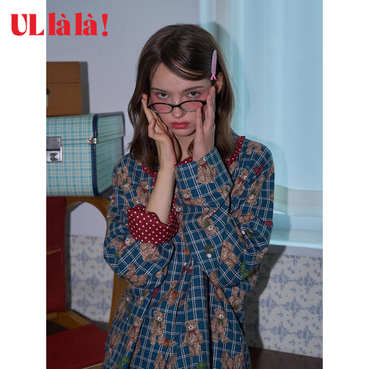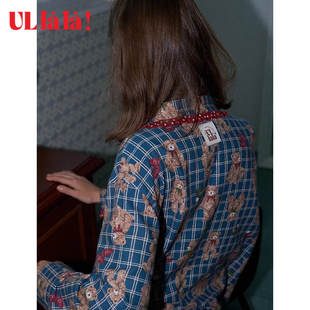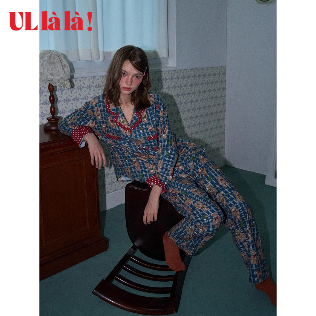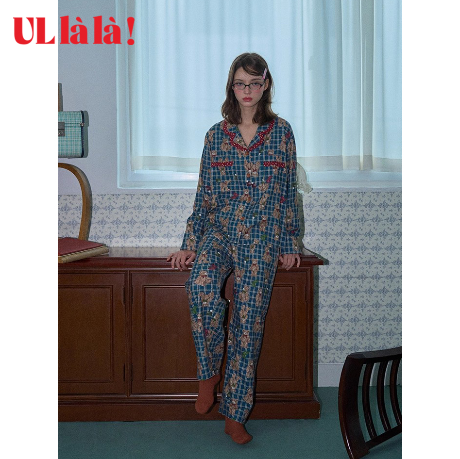 家居服套装 长裤 小熊印花纯棉长袖 Ullala韩国乌拉拉进口睡衣女秋季