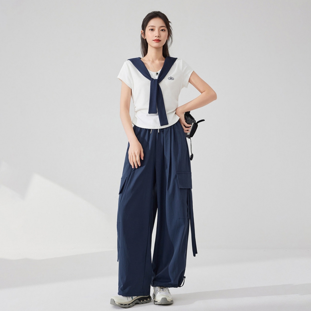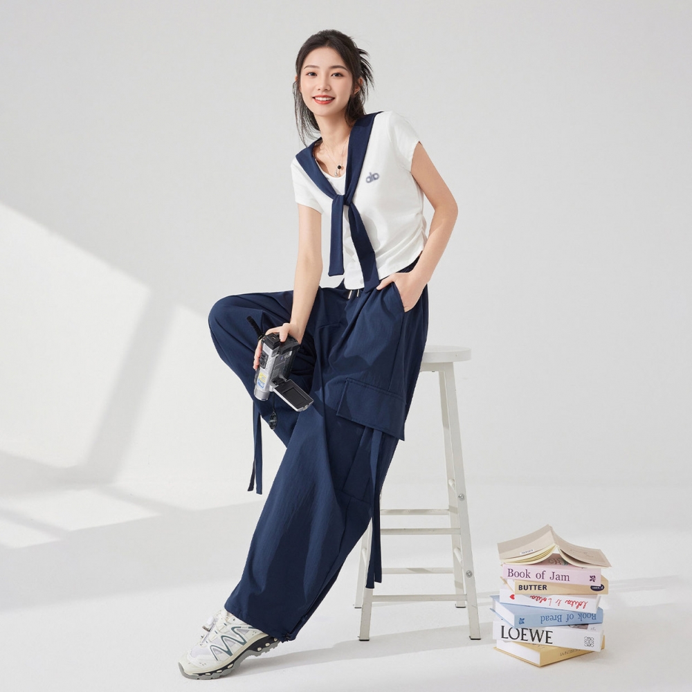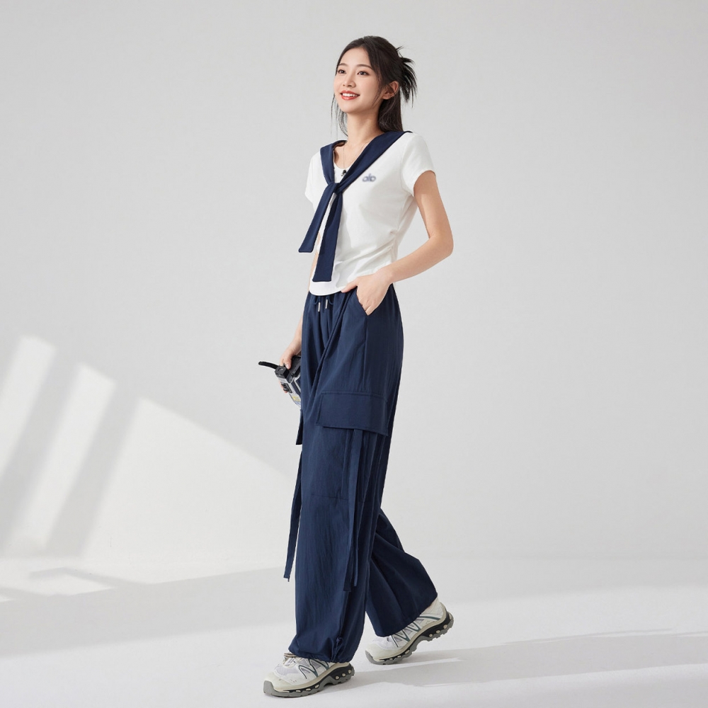 新款 子2025夏季 韩版 时尚 IEF 休闲运动风设计感百搭哈伦裤 爱依服裤