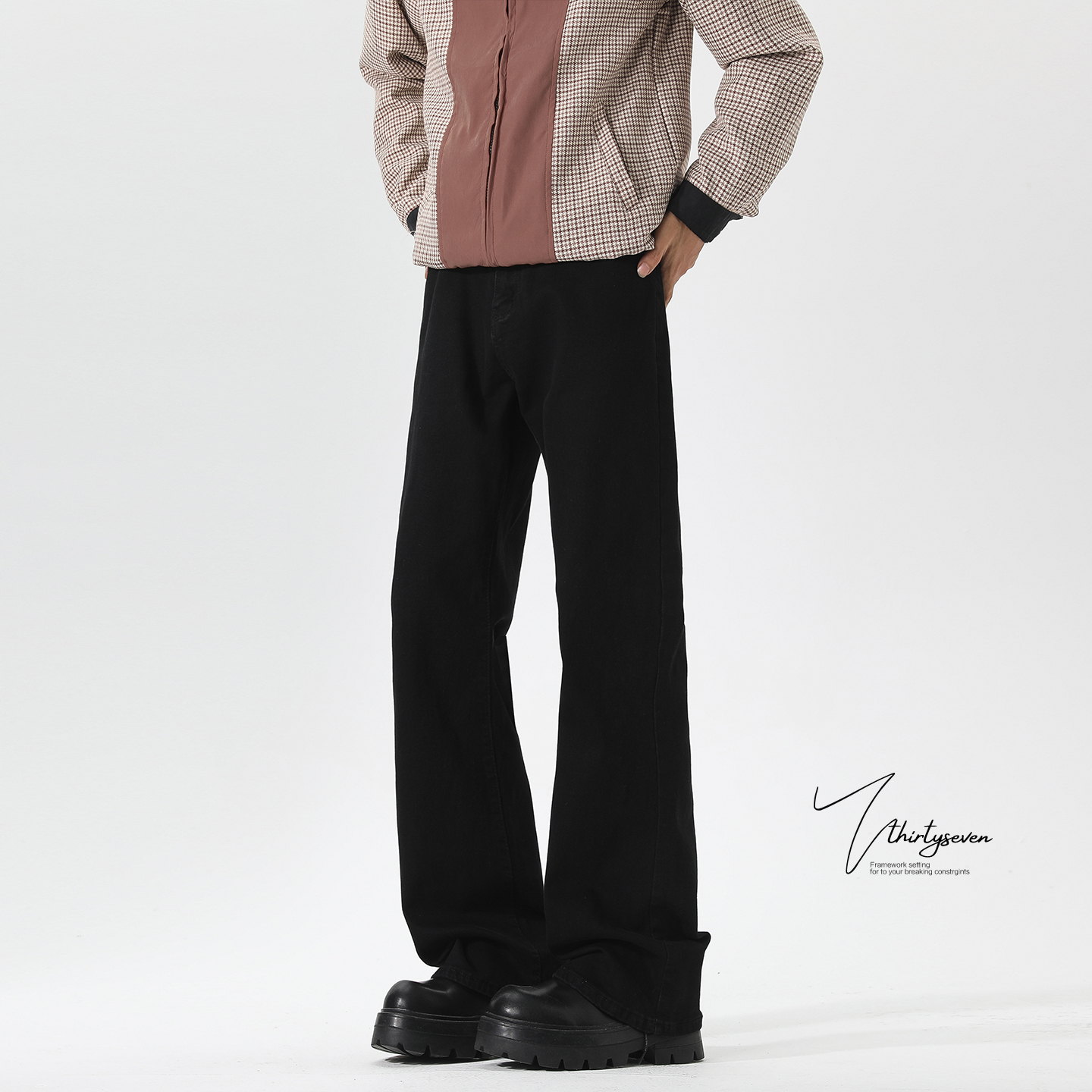 潮牌高级感cleanfit直筒长裤 男秋季 子 复古黑色微喇牛仔裤 V37美式
