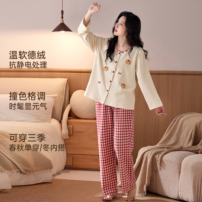 家居服套装 长袖 女高级时尚 睡衣新款 半边绒 秋季 WildRooms明星同款