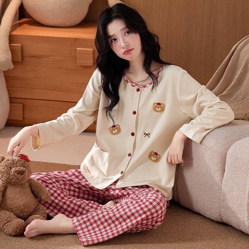 防湿水2025新 长裤 内茵睡衣女春秋带胸垫家居服套装 可外穿情侣长袖
