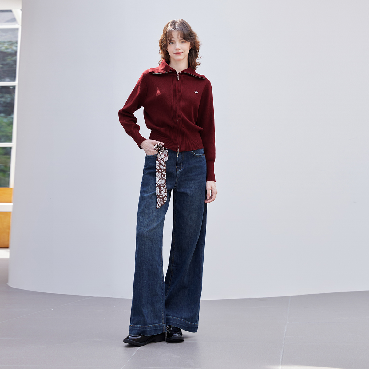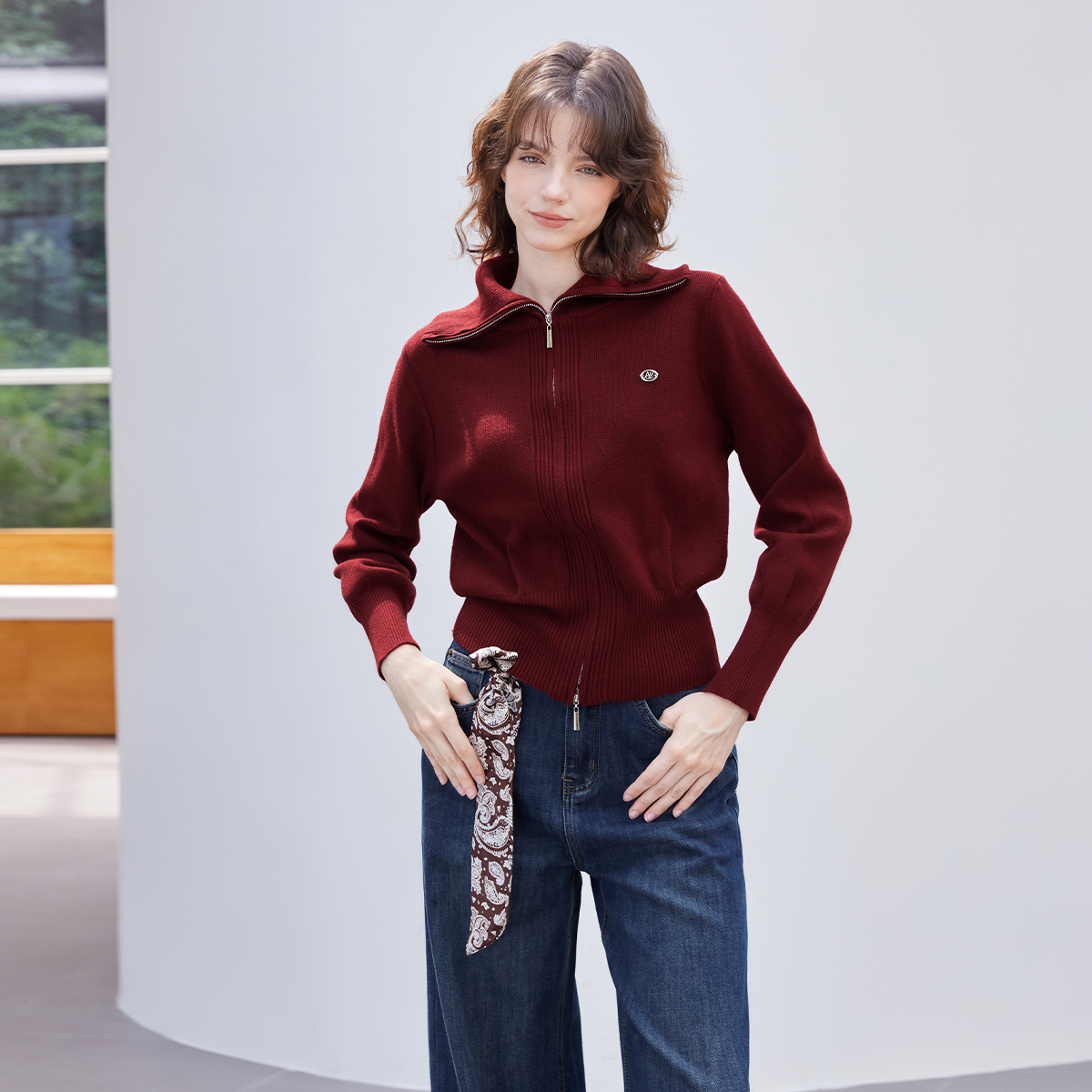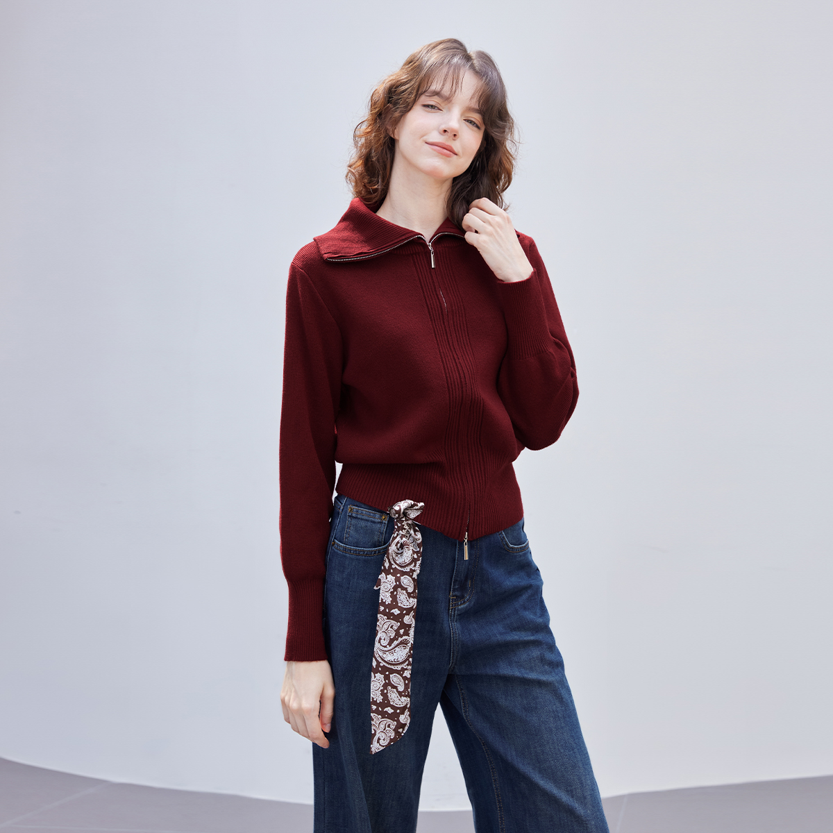 羊毛针织开衫 百家好2025秋新款 女连帽假两件毛衣外套 House Basic