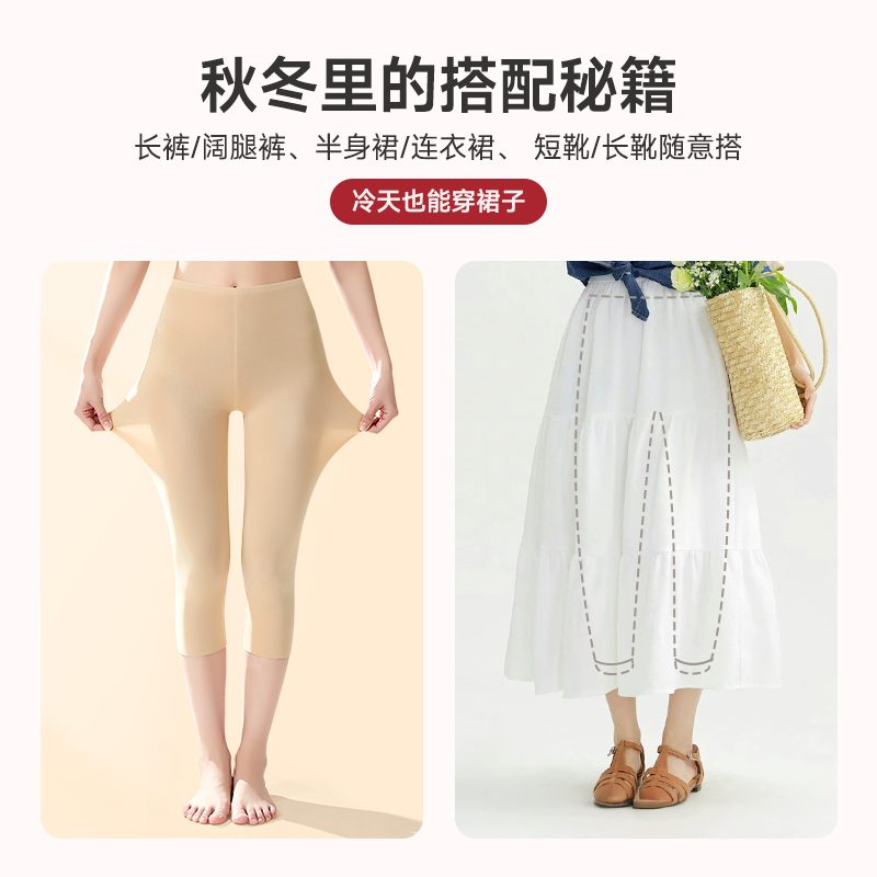 女士无痕薄款 2025新款 内穿七分打底裤 秋裤 穿在裙子里 高腰保暖裤