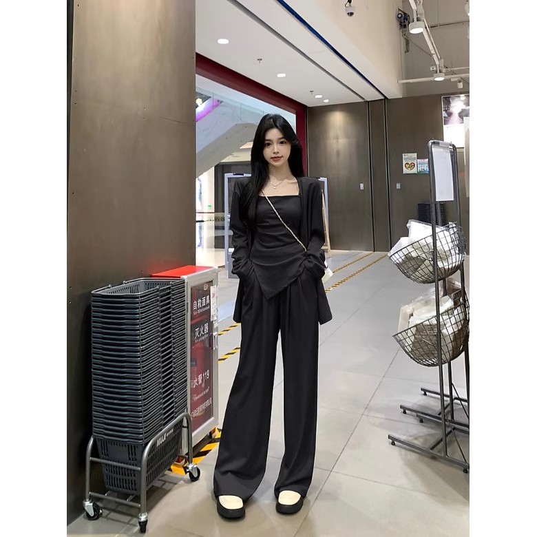 女装 长裤 气质高级感套装 吊带上衣胖MM显瘦西装 休闲三件套 秋季 大码
