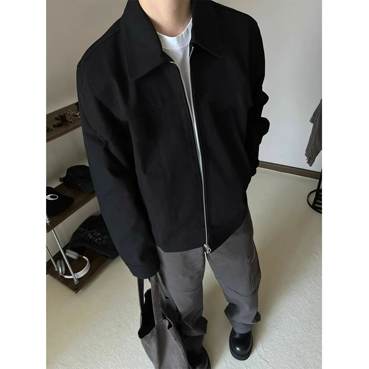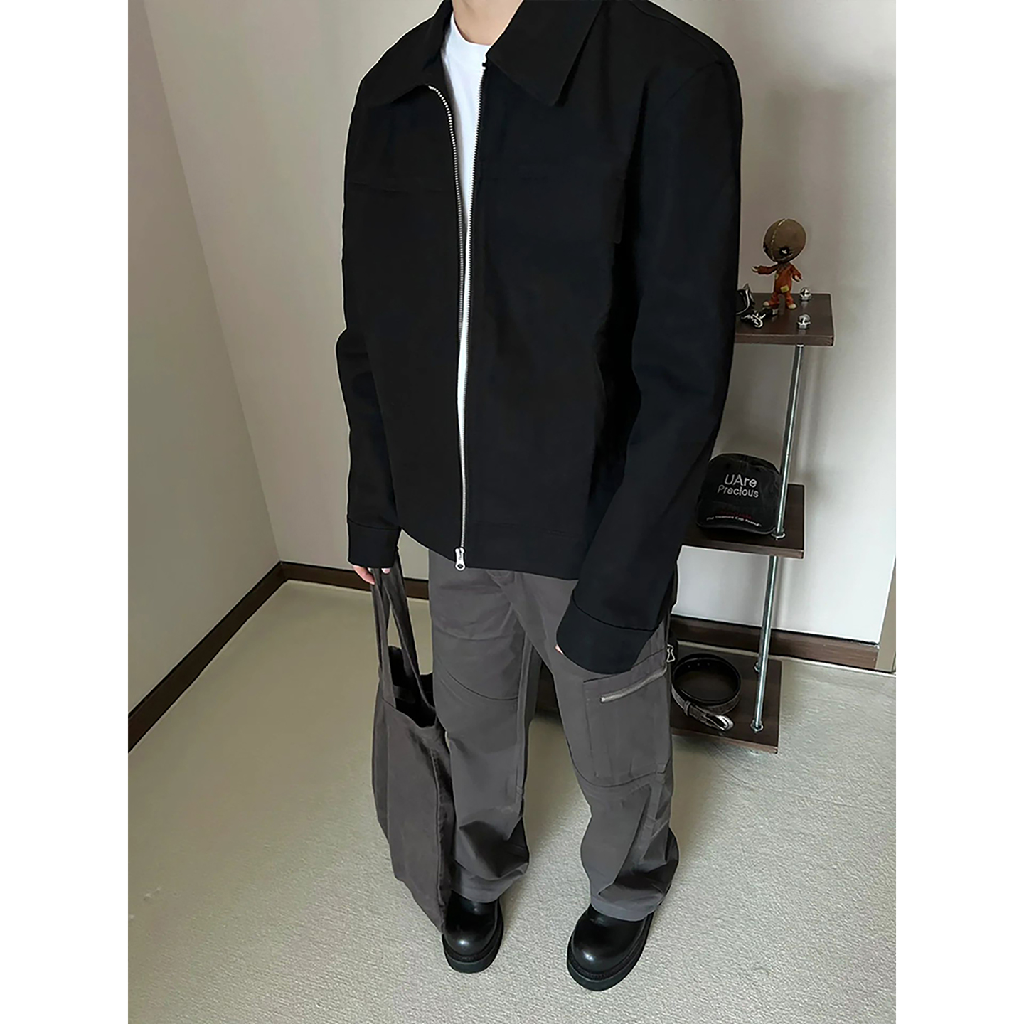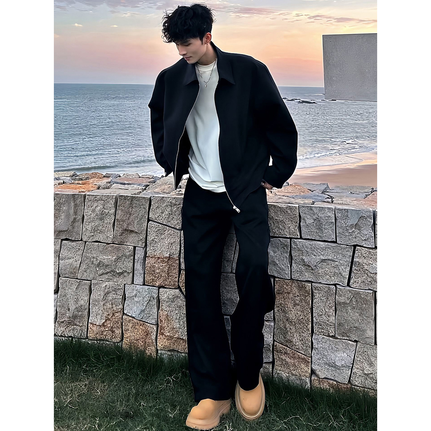 美式 秋季 正肩棒球服痞帅高级感行政夹克 外套男款 cleanfit黑色短款