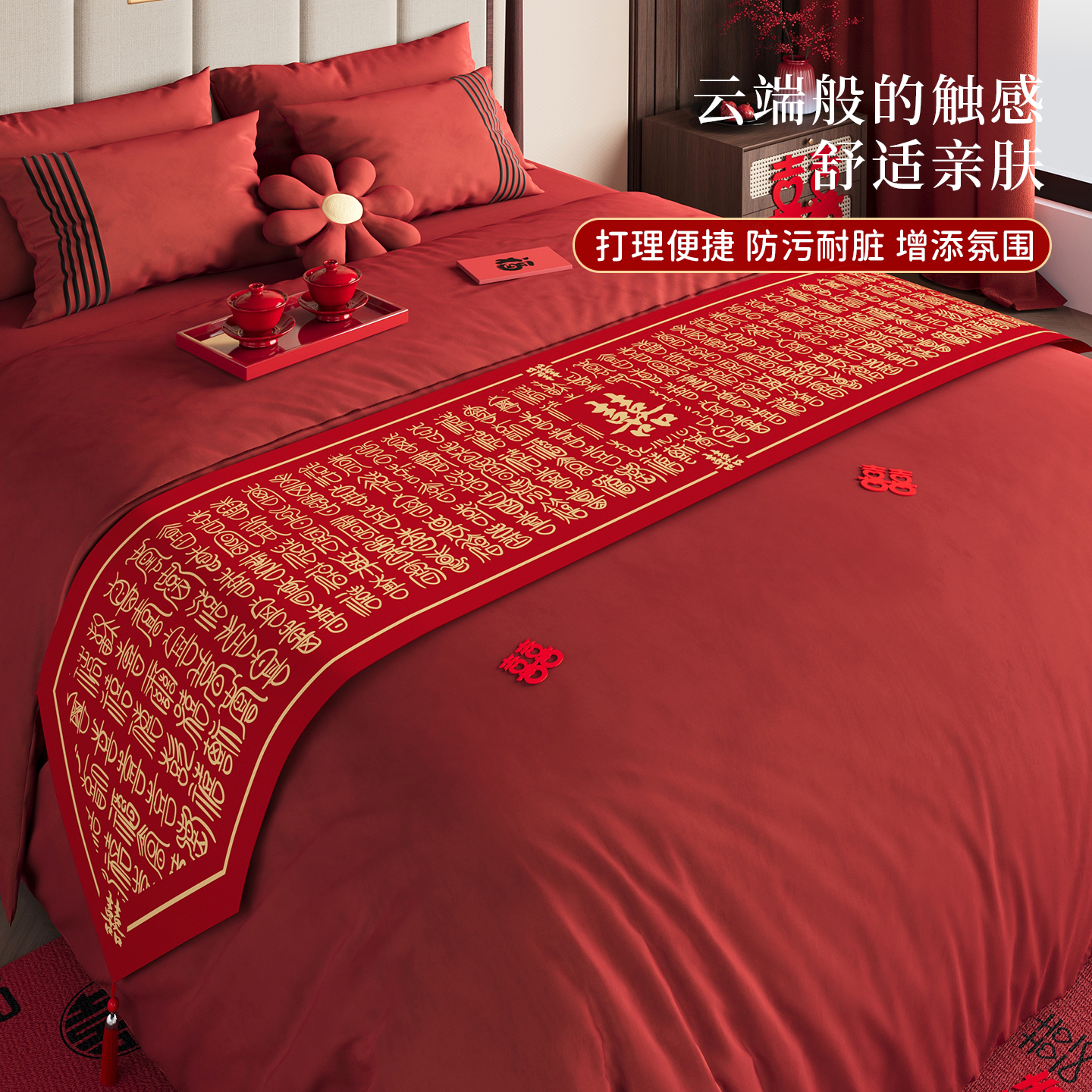 桌旗轻奢高端结婚红色新中式 禅意茶桌垫布茶几茶旗茶台桌布床旗
