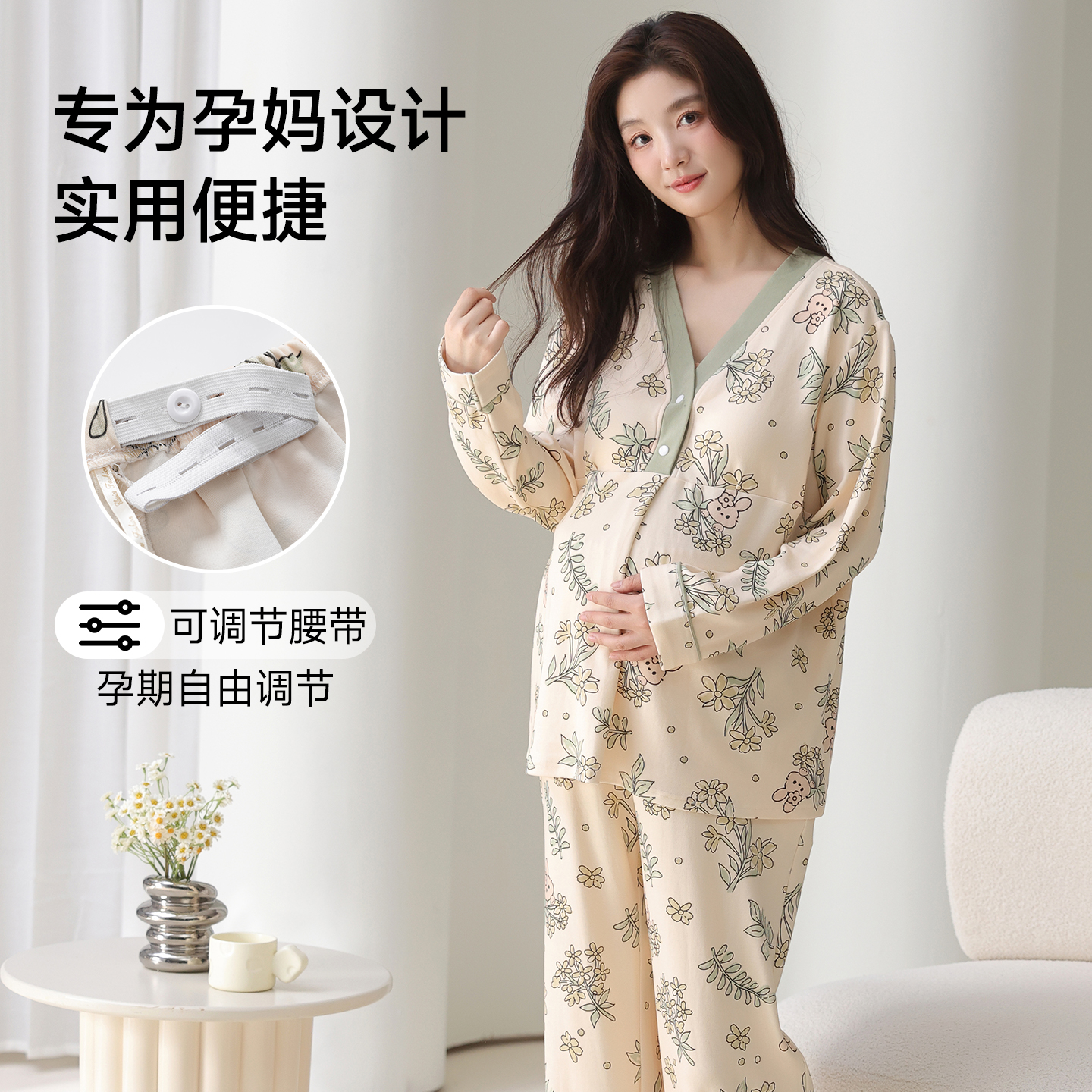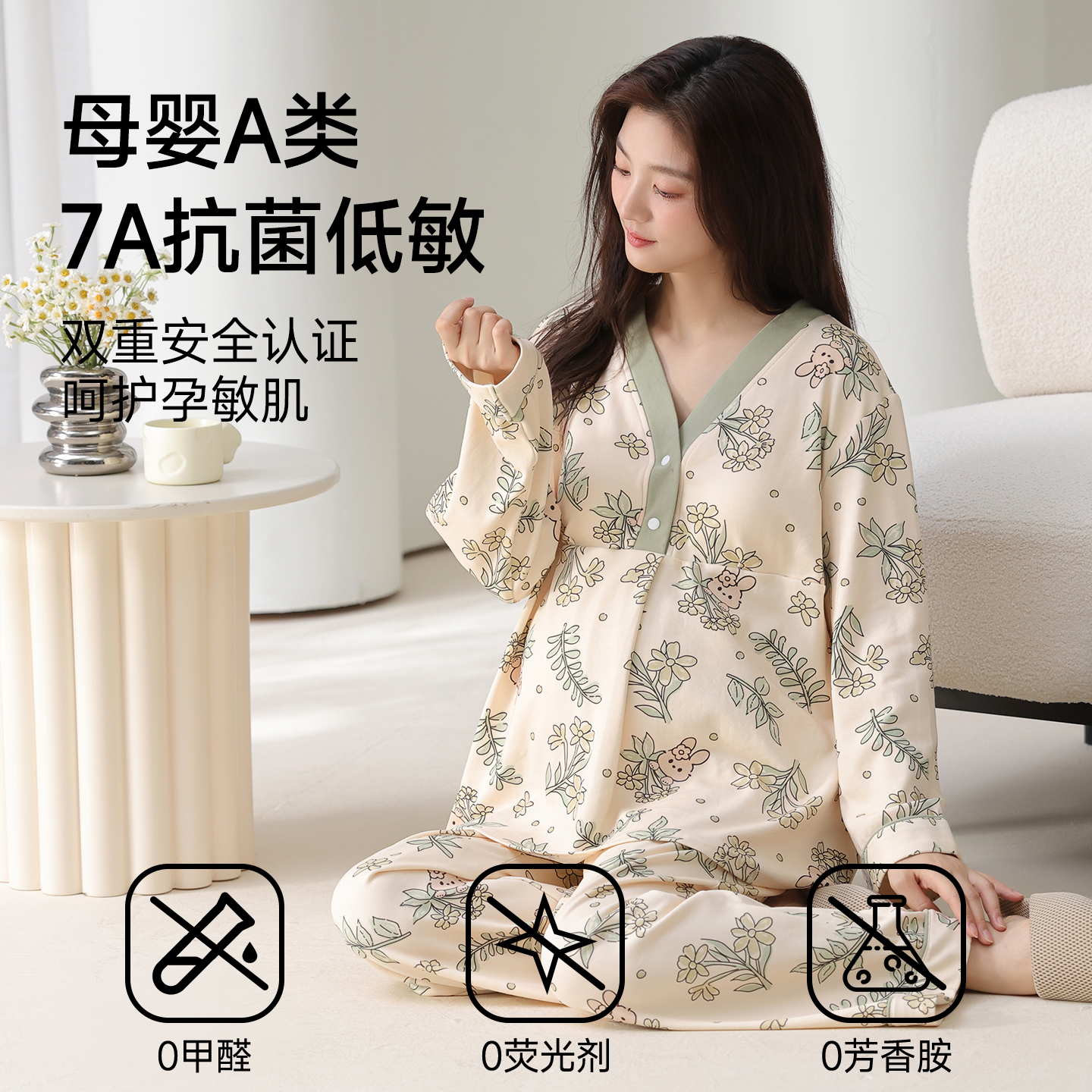 都市丽人月子服女春秋产后带胸垫孕妇睡衣怀孕期喂奶哺乳家居服