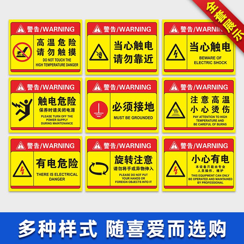 当心机械伤人标识牌警示贴工厂生产车间机器设备注意安全温馨提示牌当心小心伤手夹手机械伤害贴纸标志告示牌