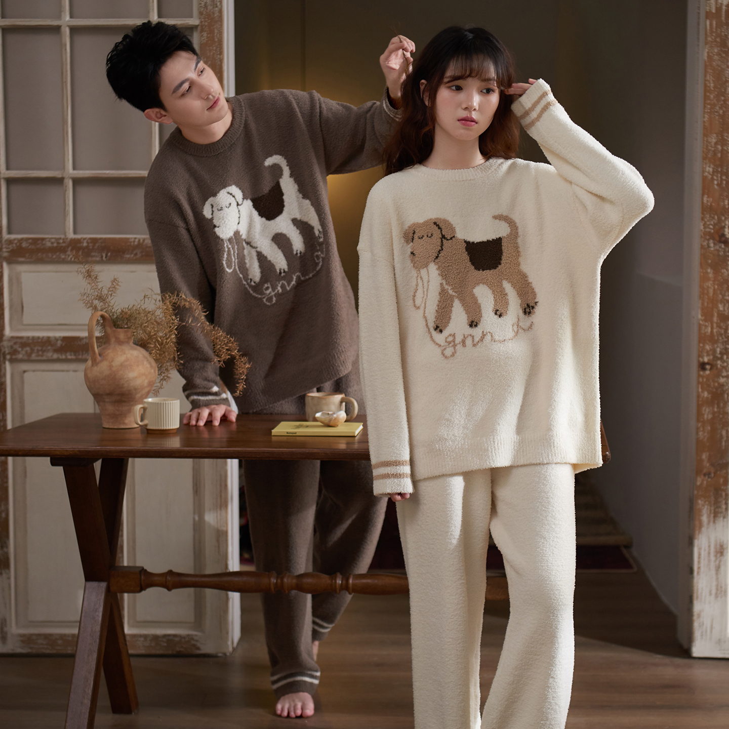 男士 家居服套装 中厚抗静电薄绒开衫 红豆暖暖绒海岛绒睡衣女秋冬款