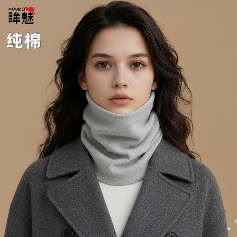 纯棉保暖围脖男女同款 运动骑行防风护颈多功能脖套纯色护脖 秋冬季