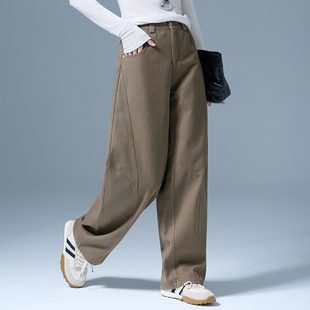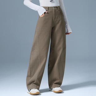 加绒拖地裤 高腰阔腿牛仔裤 直筒宽松显瘦小个子窄版 秋季 女2025新款