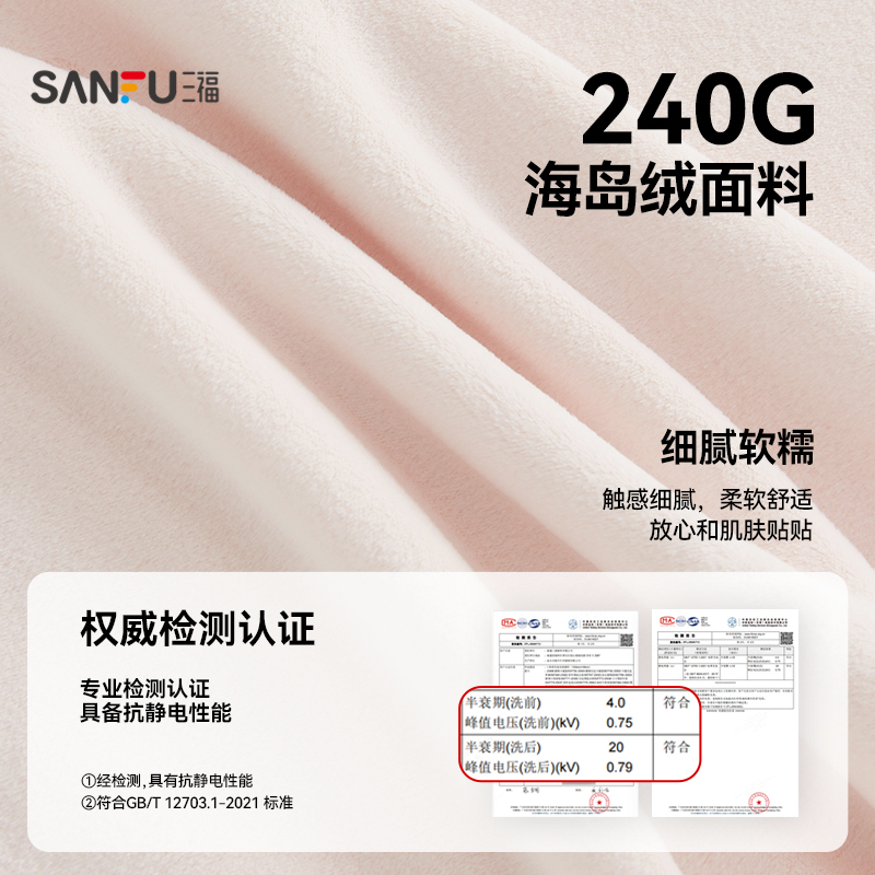 家居服507739 圆领长袖 三福女冬季 小刺绣海岛绒抗静电睡衣套装