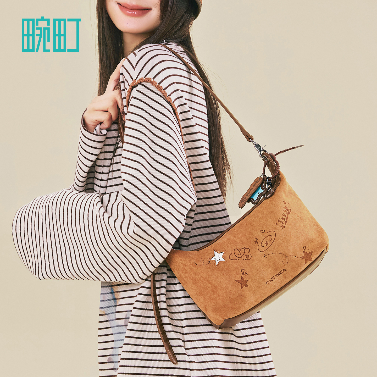 畹町软麂皮饺子包秋冬复古棕美拉德单肩腋下包休闲百搭通勤斜挎包