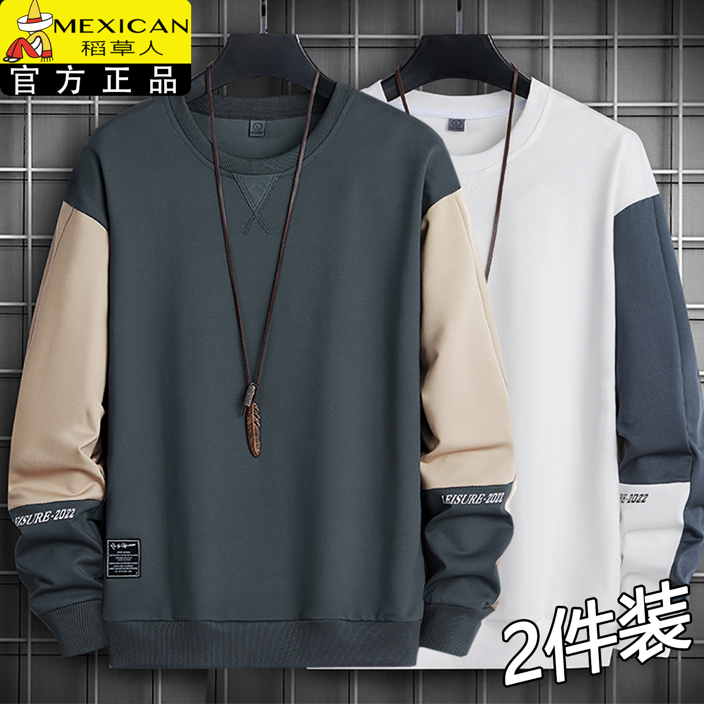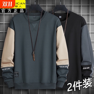 t恤打底衫 稻草人2025春秋季 卫衣拼色中老年百搭长袖 男士 新款