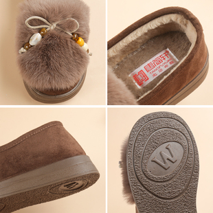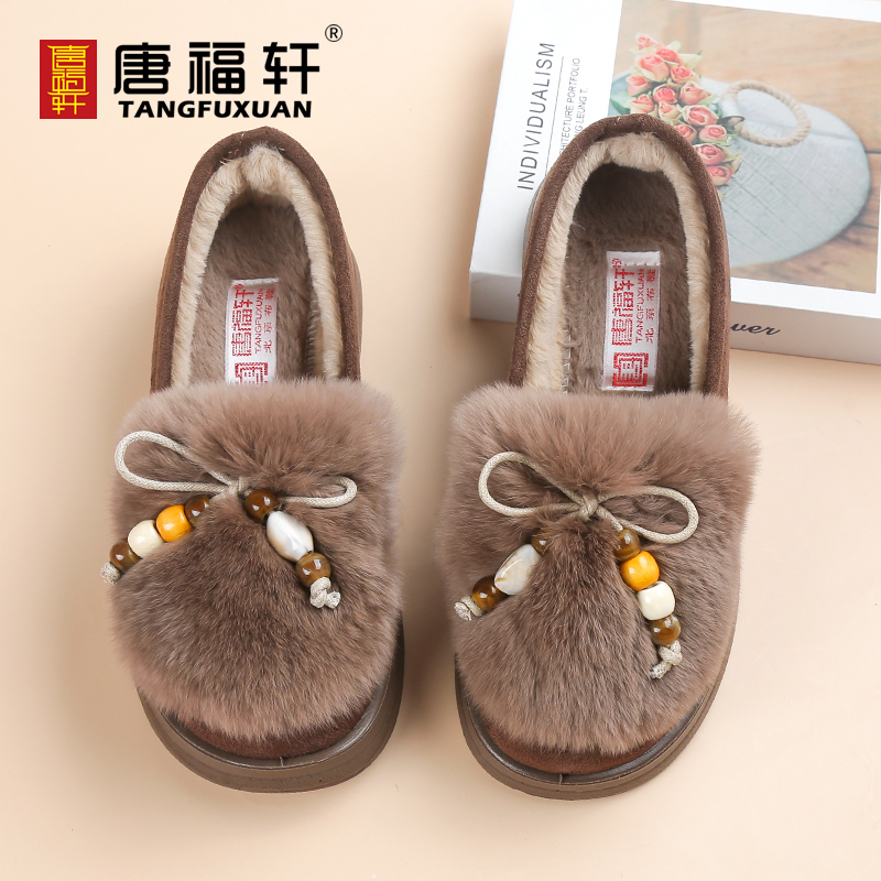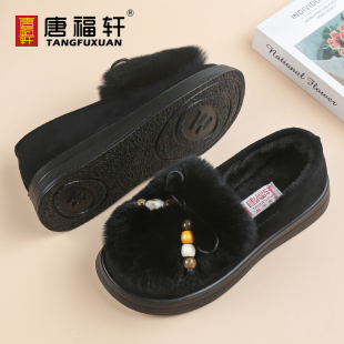 厚底轻便二棉毛毛鞋 唐福轩棉鞋 平底真毛中老年休闲鞋 新款 女秋冬季