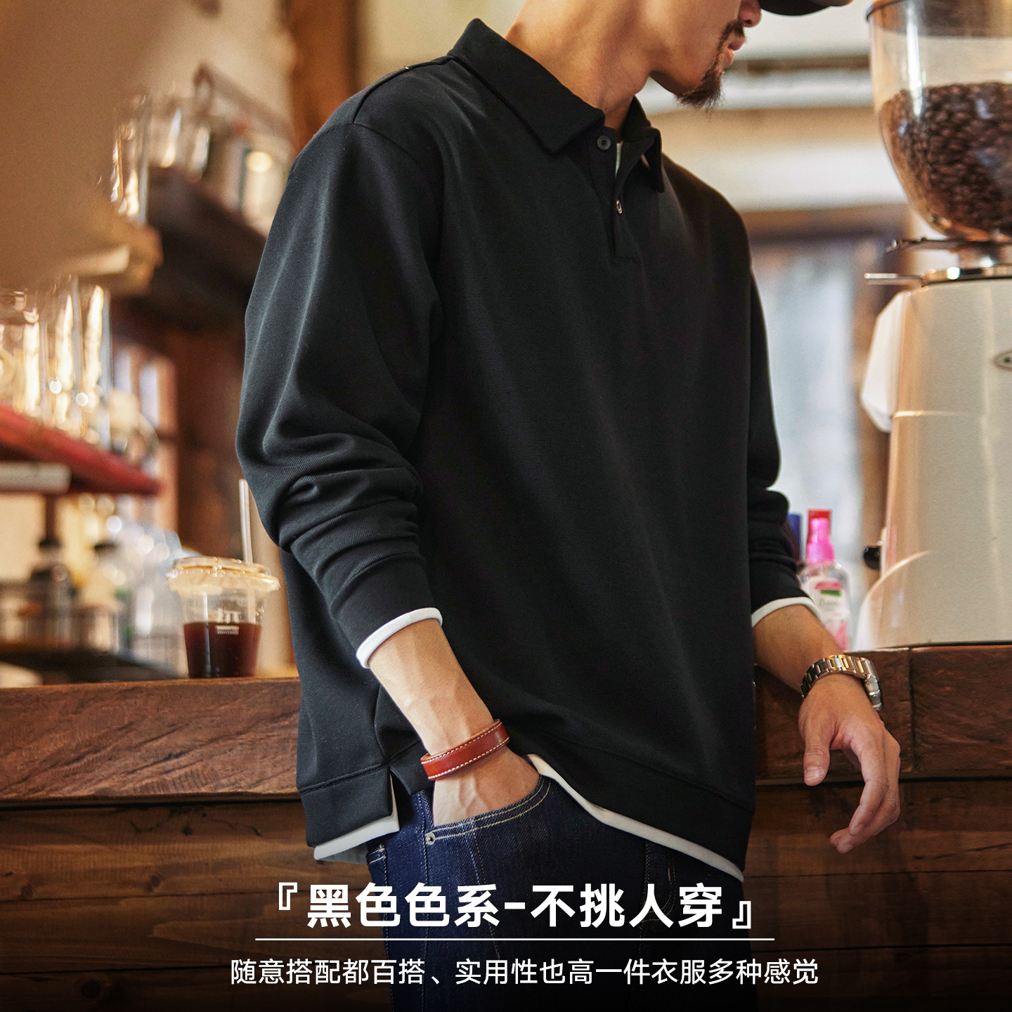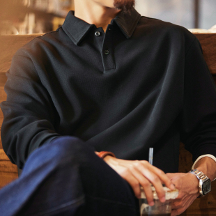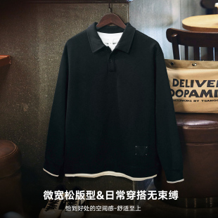 骆驼1930圆领卫衣长袖 休闲宽松条纹黑色套头上衣 t恤男女情侣秋季
