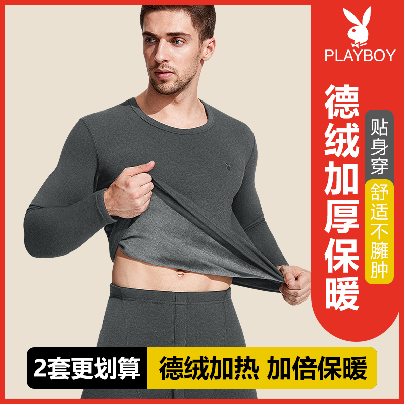 德绒秋衣秋裤 男士 羊绒保暖衣冬 加绒加厚套装 花花公子保暖内衣男款