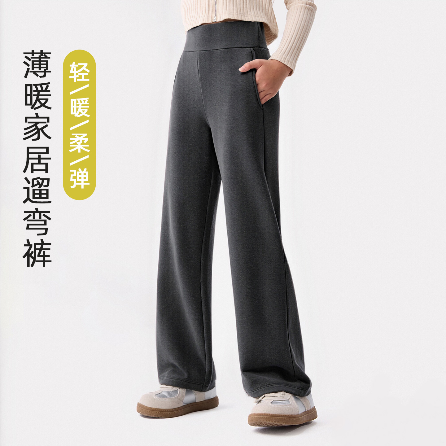 女孩绒感秋装 女童阔腿裤 宽松长裤 子女大童2025新款 春秋儿童保暖裤