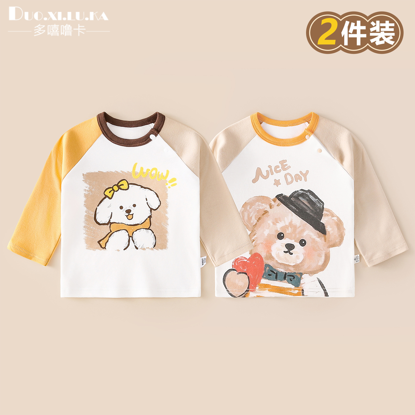 女宝宝新款 2件装 打底衫 T恤2025男童春秋装 a类纯棉上衣服 儿童长袖