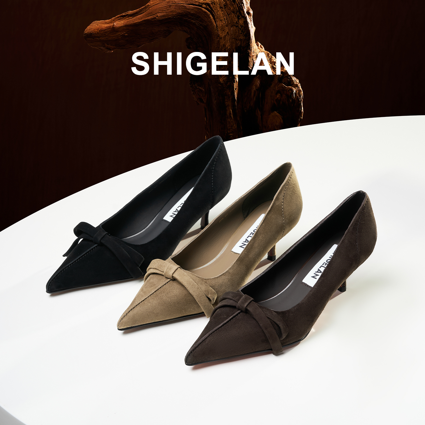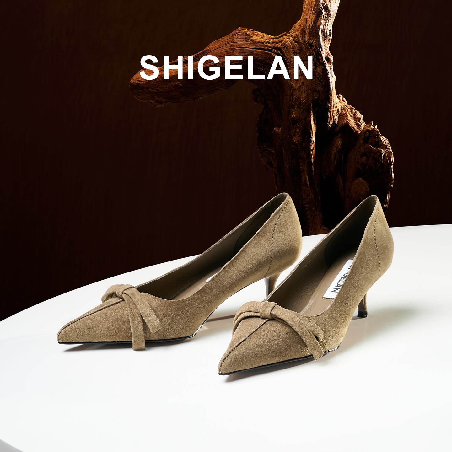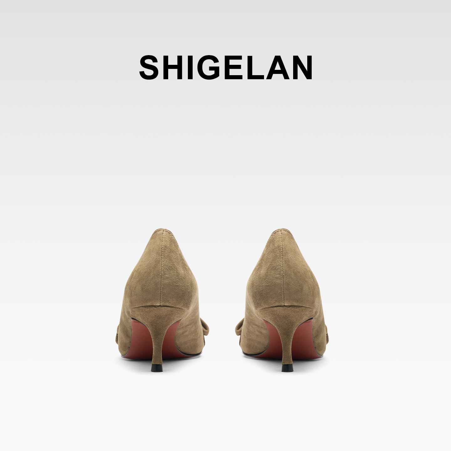 商场新款 百思图25秋季 浅口单鞋 小红鞋 女婚鞋 一脚蹬皮鞋 梦中人