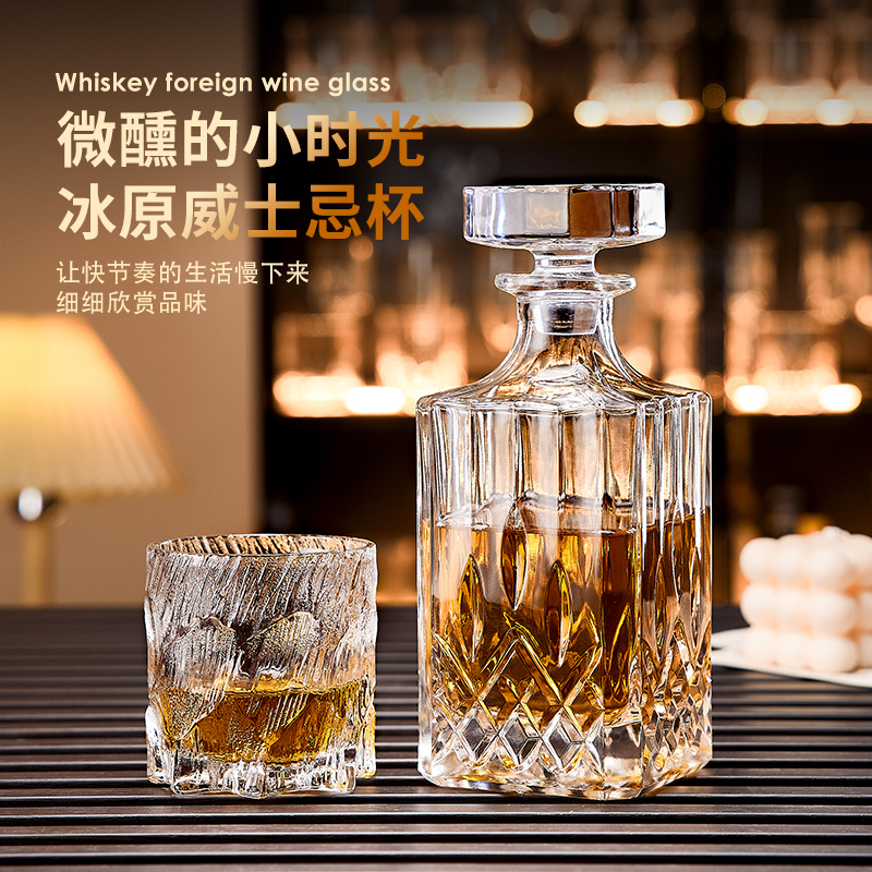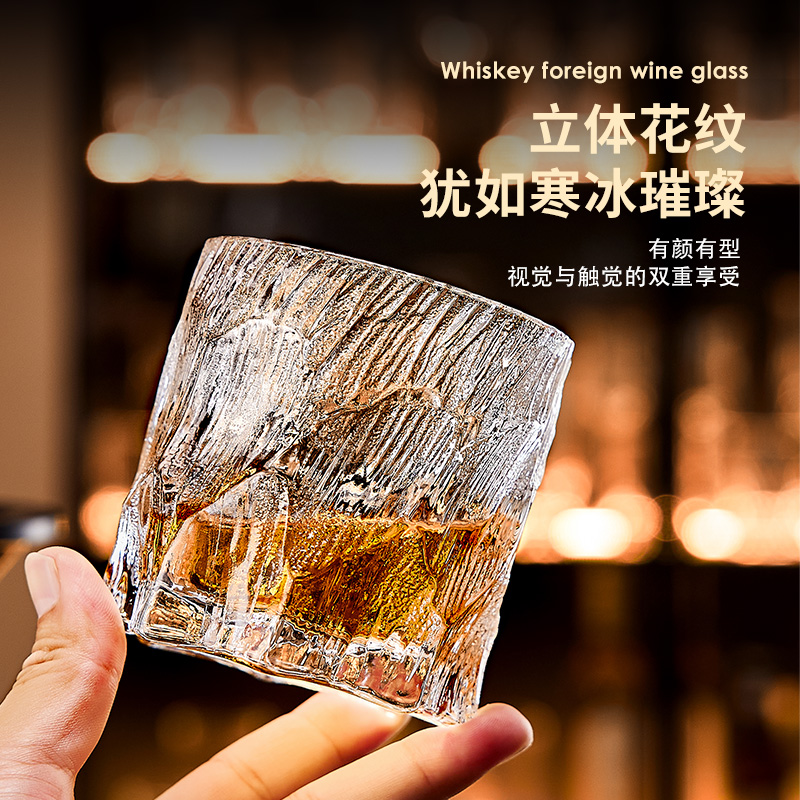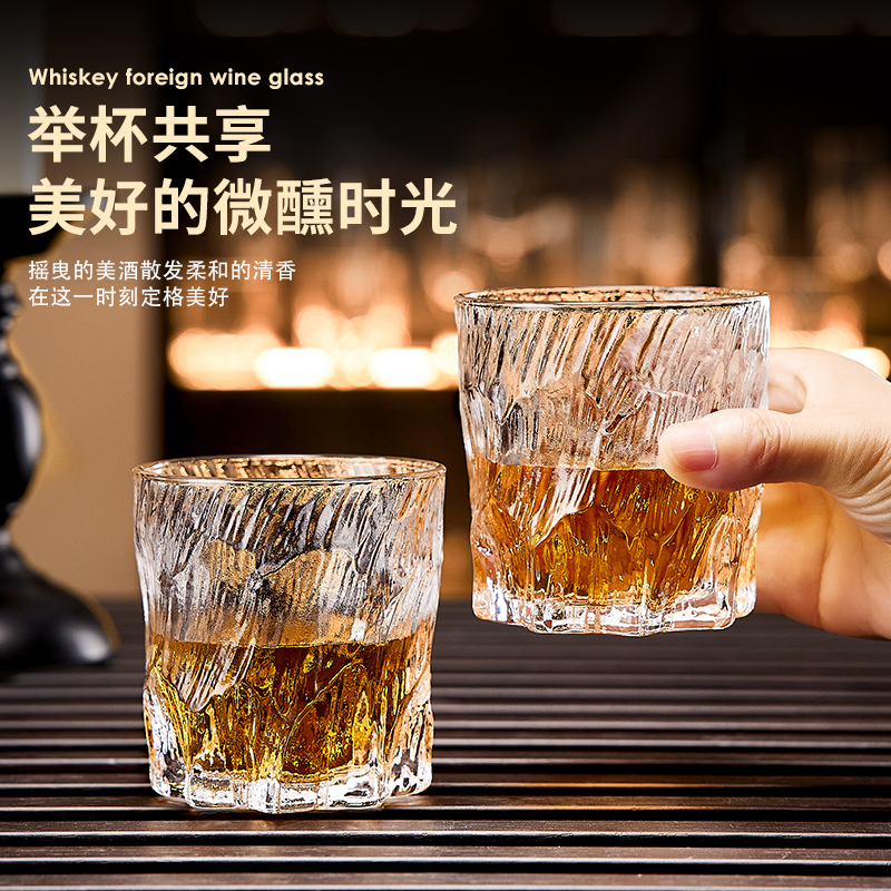 青苹果威士忌酒杯洋酒杯轻奢高档水晶玻璃家用闻香酒杯星芒啤酒杯