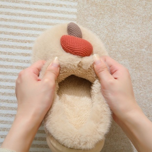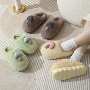 月子室内家居家防滑厚底踩屎感毛毛绒保暖情侣男 秋冬季 棉拖鞋 女款