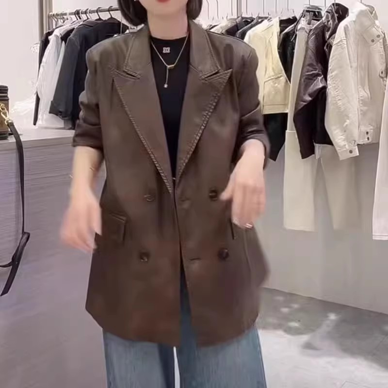洋气韩版 新款 宽松百搭炸街上衣女ins 皮衣女早秋季 高级感气质西装