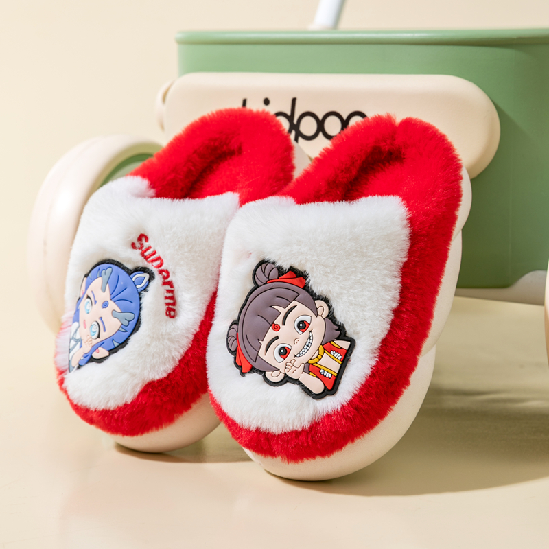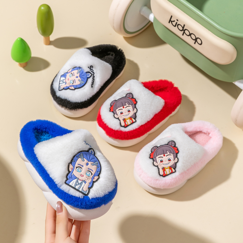 软底防滑宝宝室内拖 卡通哪吒男童居家室内女童拖鞋 冬季 儿童棉拖鞋