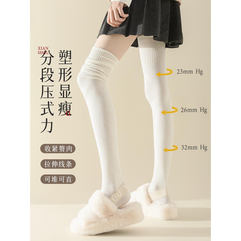 长靴大腿过膝袜子女冬秋款 白色长筒袜 高筒加长加厚加绒保暖秋冬季