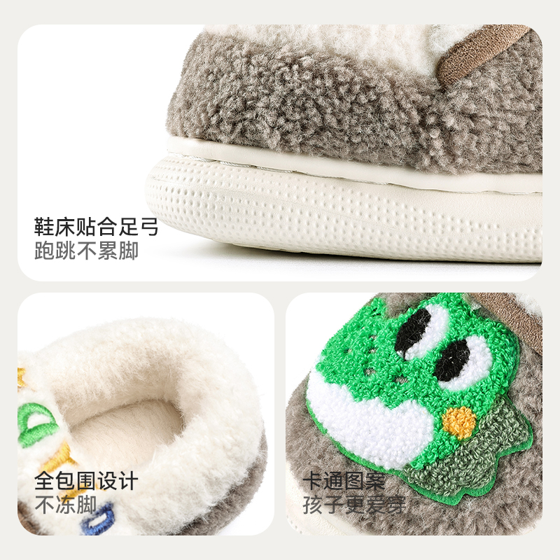 一岁半幼儿室内保暖包跟家居鞋 小宝宝拖鞋 男童冬季 恐龙儿童棉拖鞋