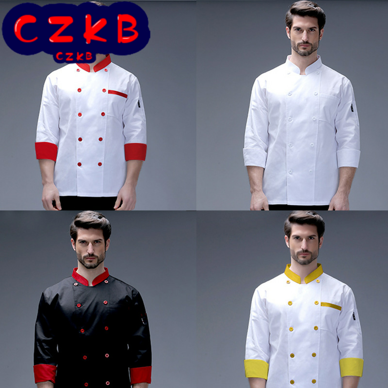 厨师服男长袖 食堂厨师工作服 白色透气可刺绣logo餐饮餐厅酒店工装