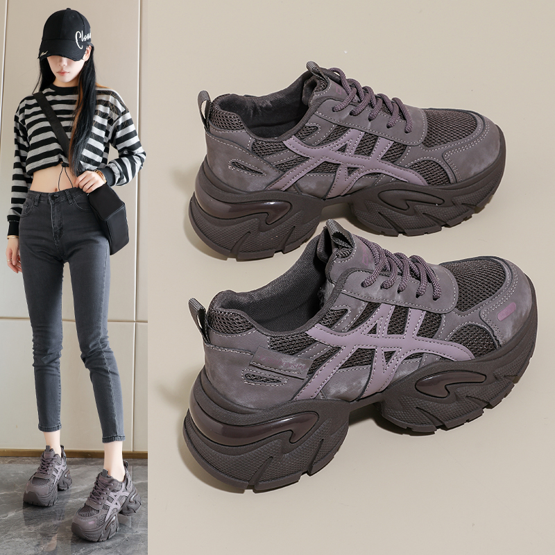 显脚小34码 厚底老爹鞋 秋季 子2025新款 不累脚 女增高7CM运动休闲鞋