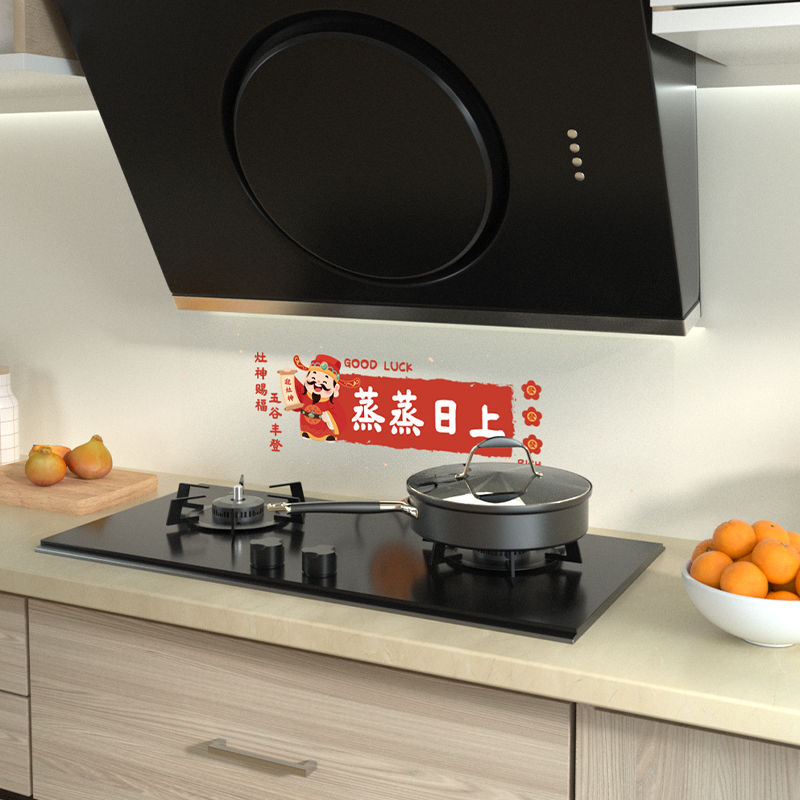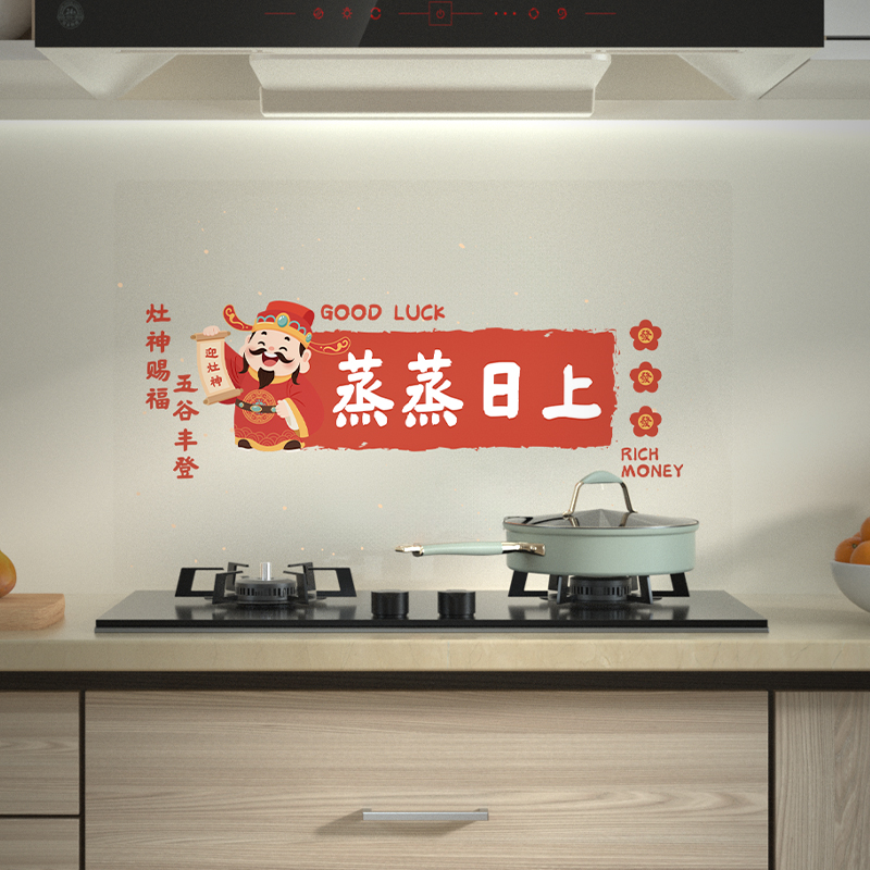 厨房防油贴纸墙纸自粘防水耐高温墙面美化装 饰灶台灶王爷蒸蒸日上