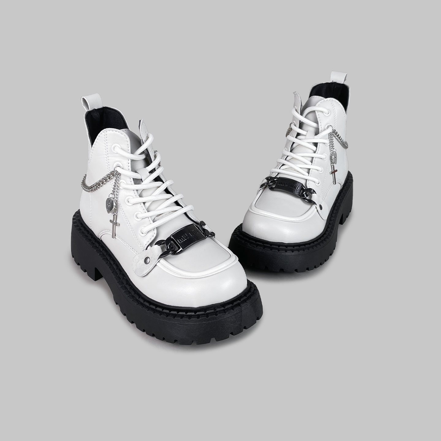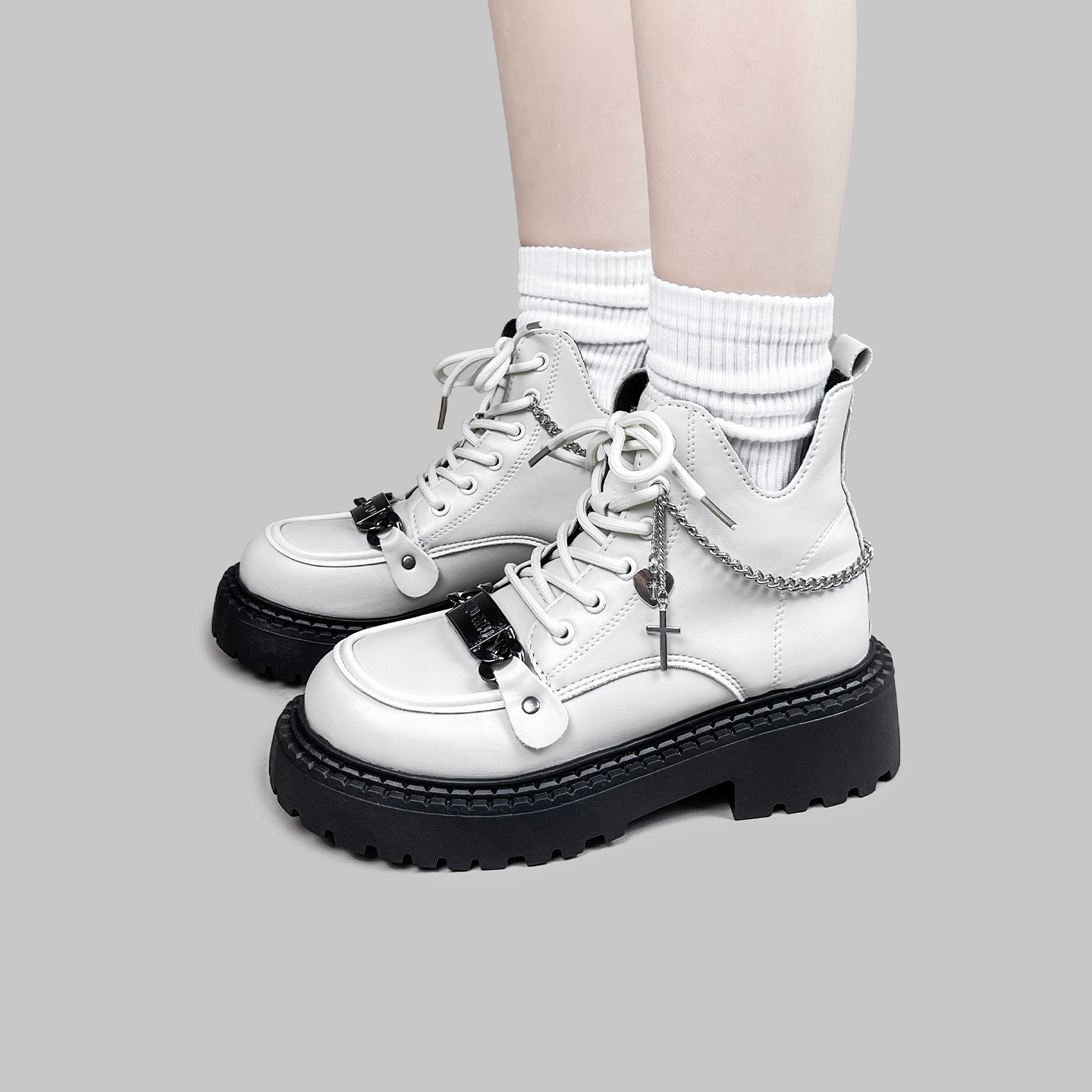 黑色增高靴子女时尚 新款 休闲皮面短靴 2025秋季 环球厚底马丁靴女款