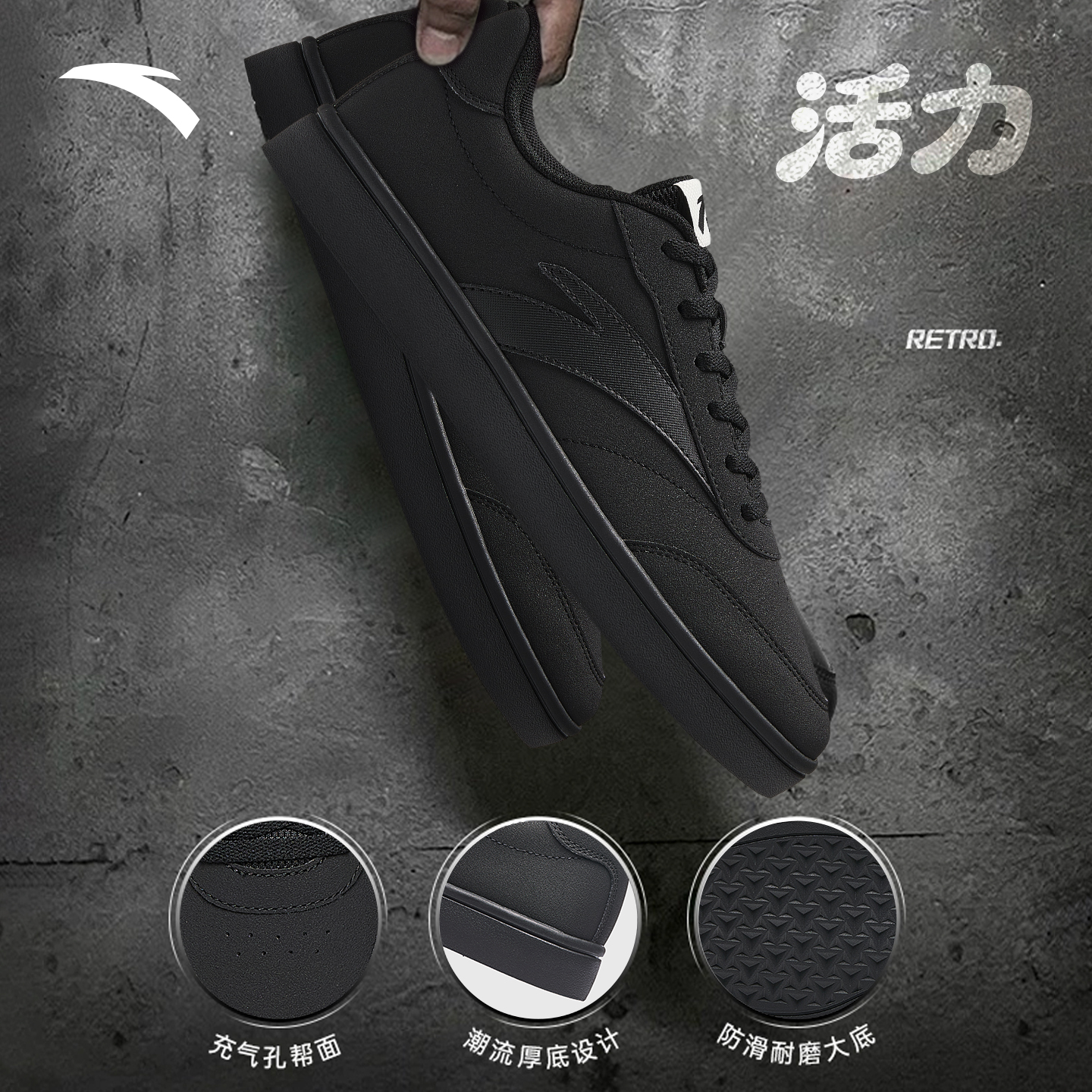 新款 2025冬季 官方正品 小黑鞋 安踏活力板鞋 皮面耐脏纯黑色板鞋 男鞋