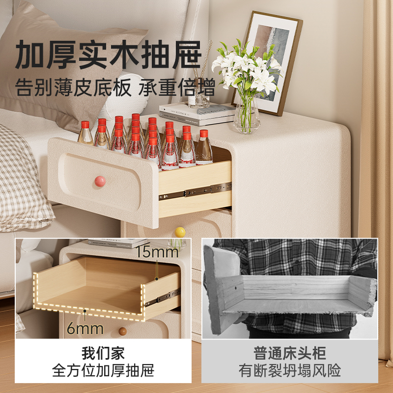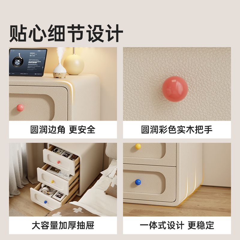 奶油风床头柜现代简约小型床边柜儿童卧室床头置物架收纳储物柜子