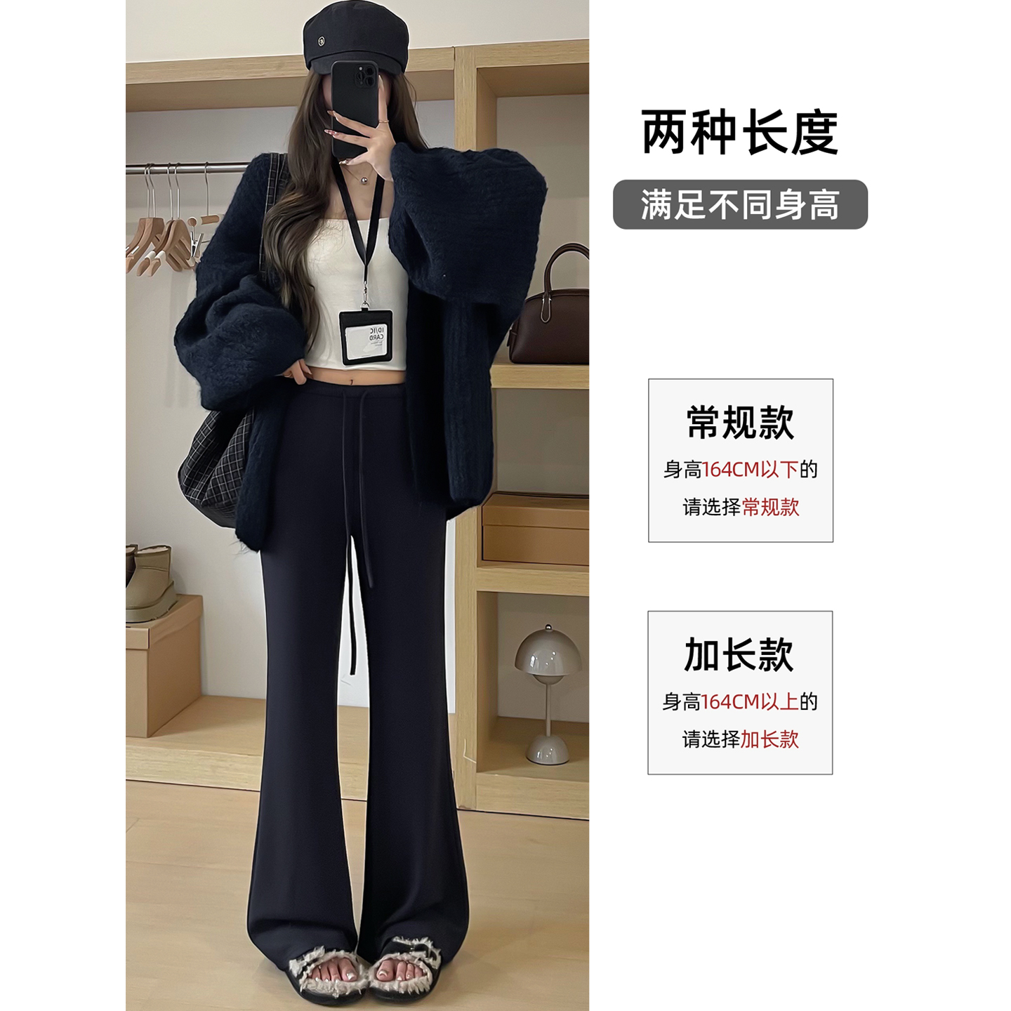 女春秋新款 休闲直筒慵懒松弛感裤 高腰垂感窄版 裤 子 西装 黑色阔腿裤