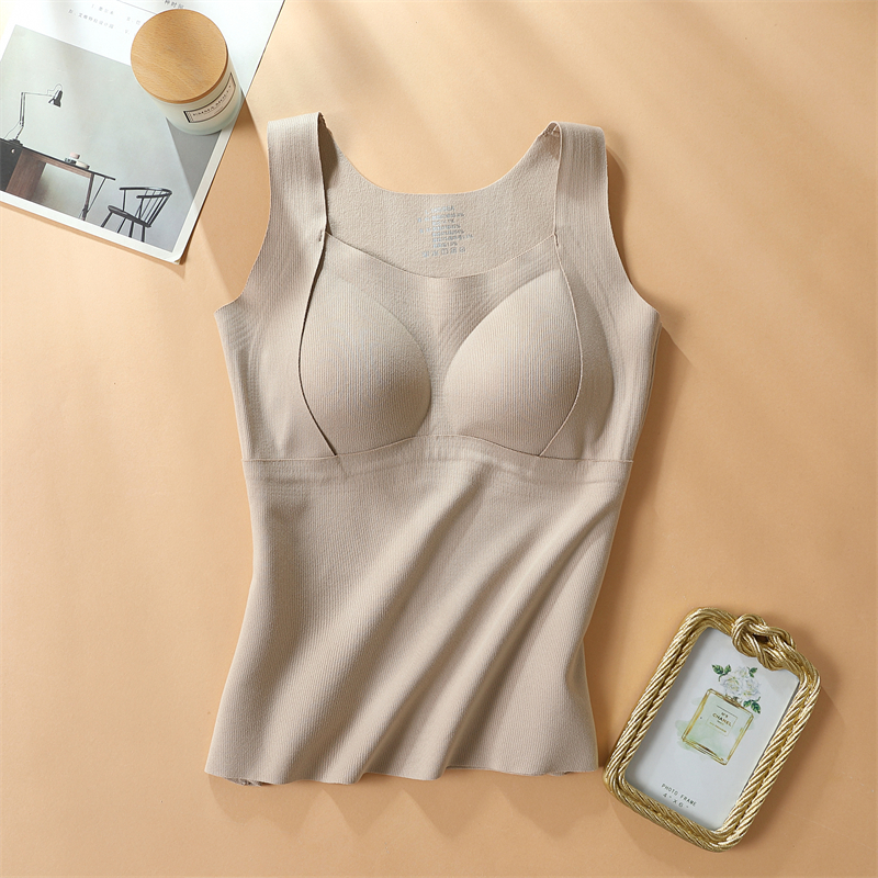 德绒保暖吊带背心女2025新款 秋冬内搭加绒发热无痕带胸垫一体内衣