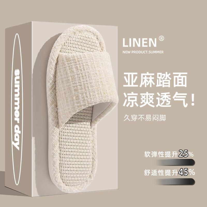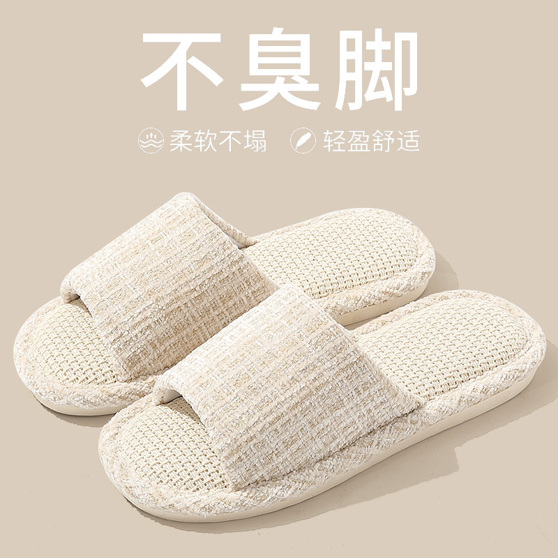 待客静音防滑透气吸汗春秋布拖鞋 买1送1亚麻拖鞋 情侣室内家居四季