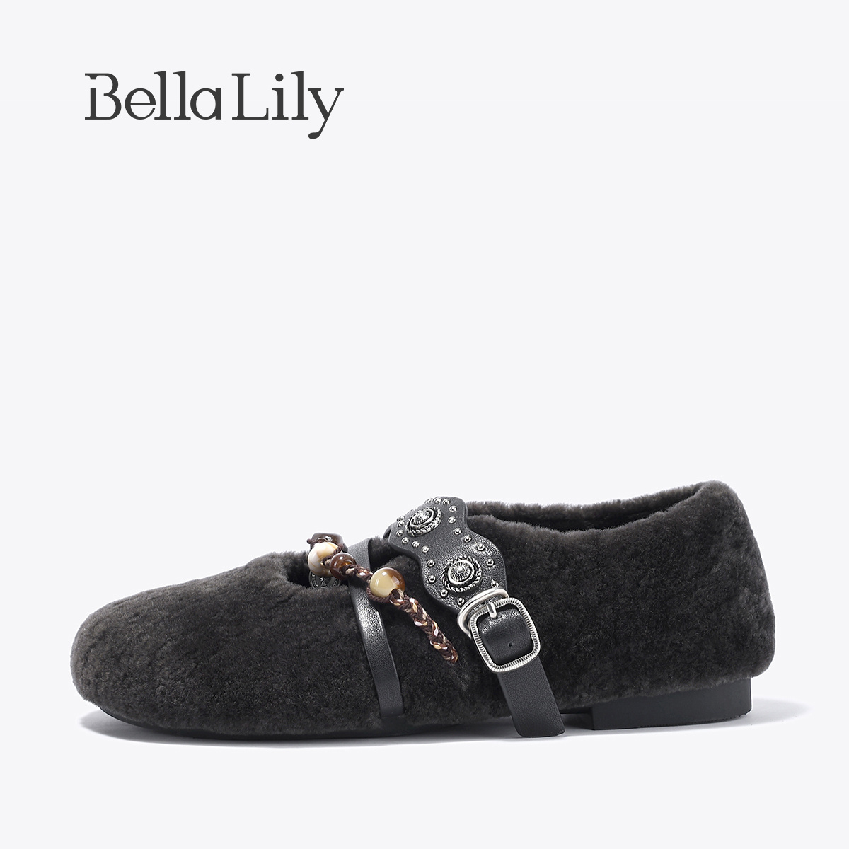 羊毛加绒毛毛鞋 BellaLily2025秋季 舒适女鞋 气质优雅平底单鞋 新款