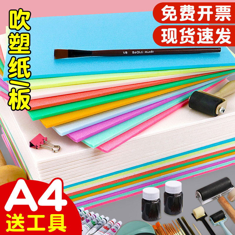 吹塑纸a4吹塑板加厚4mm美术专用儿童版 小学生a3吹塑纸板画工具材料8K16K4k彩色8开手工纸DIY折纸幼儿园 画套装