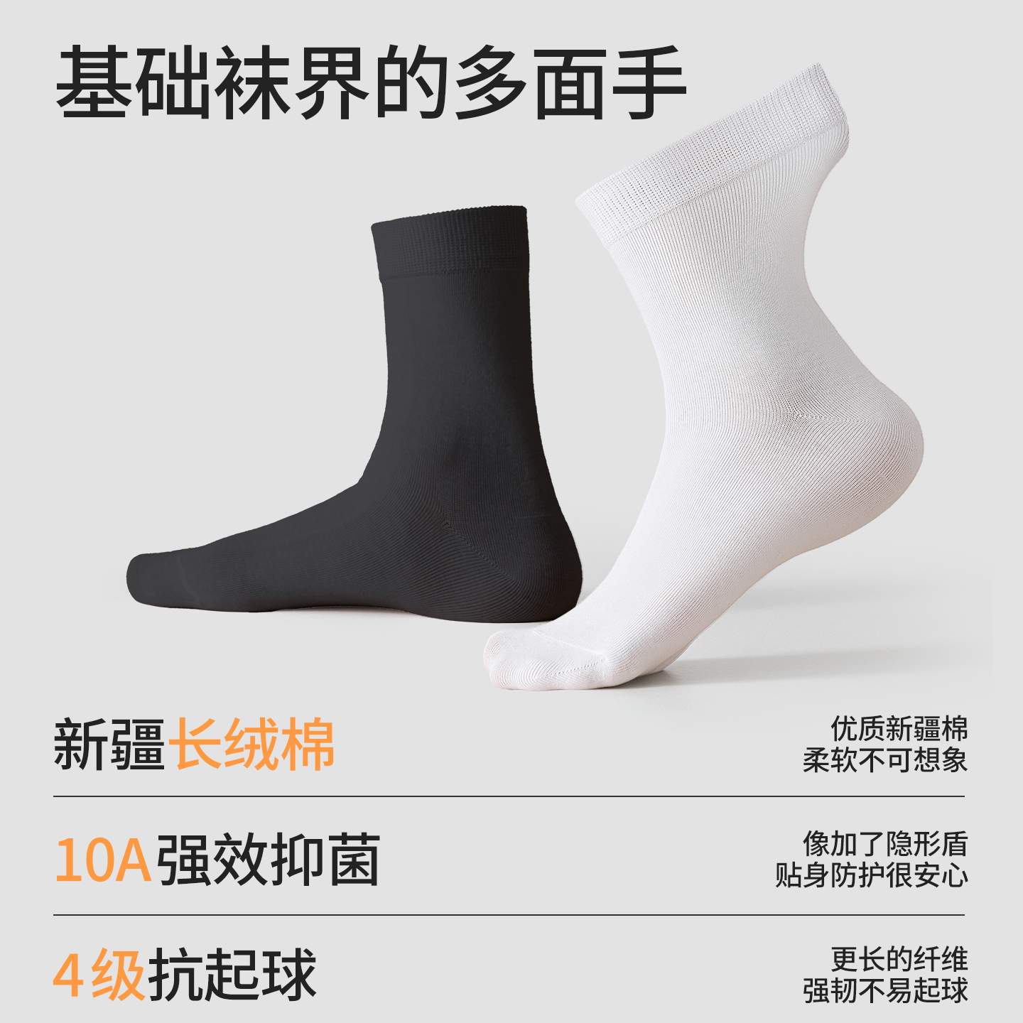 顶瓜瓜袜子男秋冬季 长袜 中筒袜纯棉纱线抗菌防臭吸汗黑色商务男士