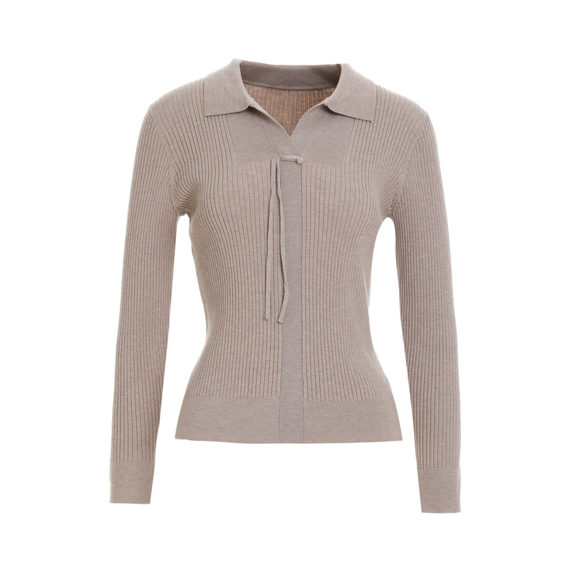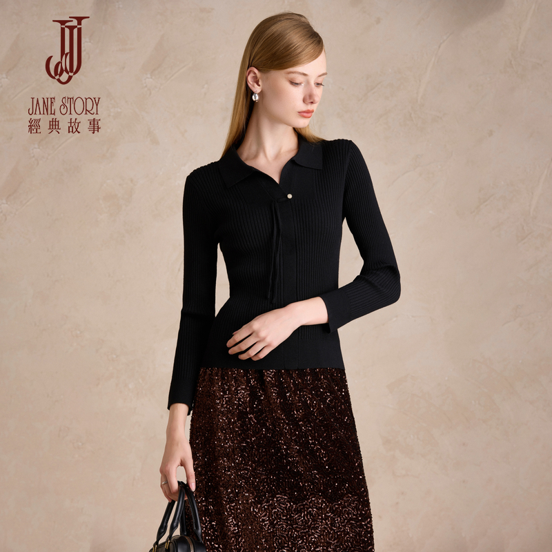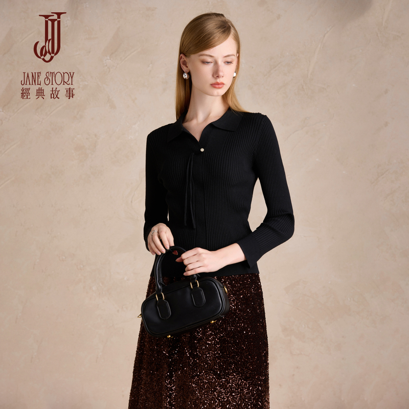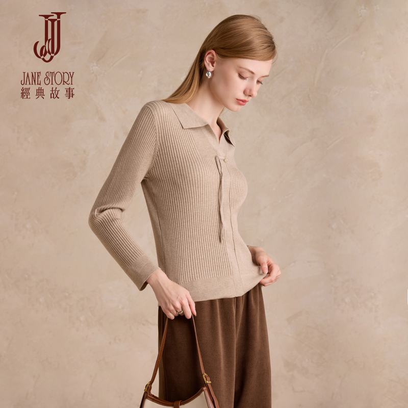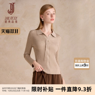 Polo衫 2025年穿搭设计感小众纯色毛衣女秋季 长袖 简约百搭修身 新款