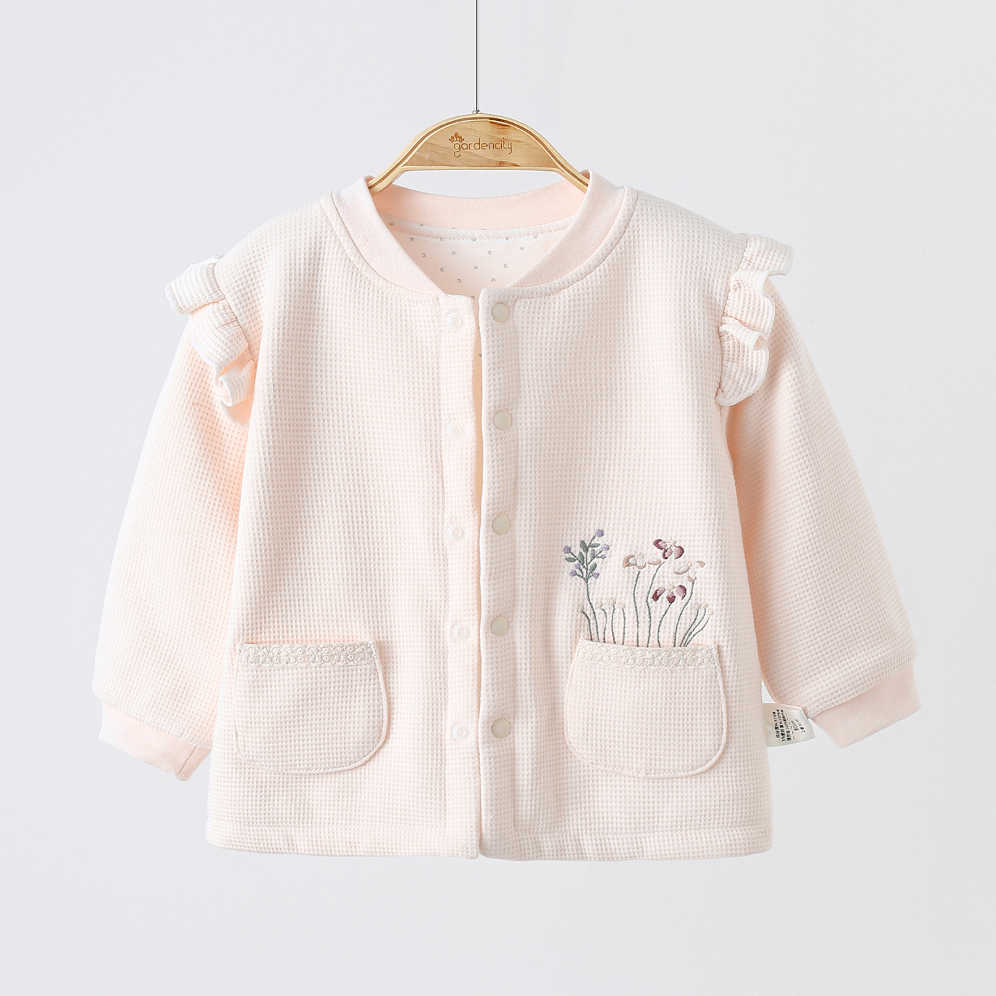 婴儿女宝宝秋冬保暖40g夹棉甜美飞袖 拼接对开上衣