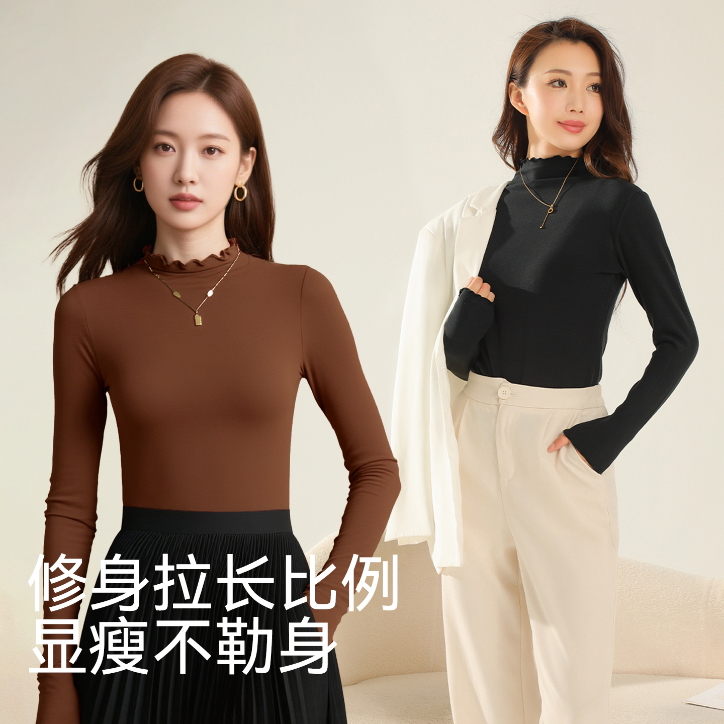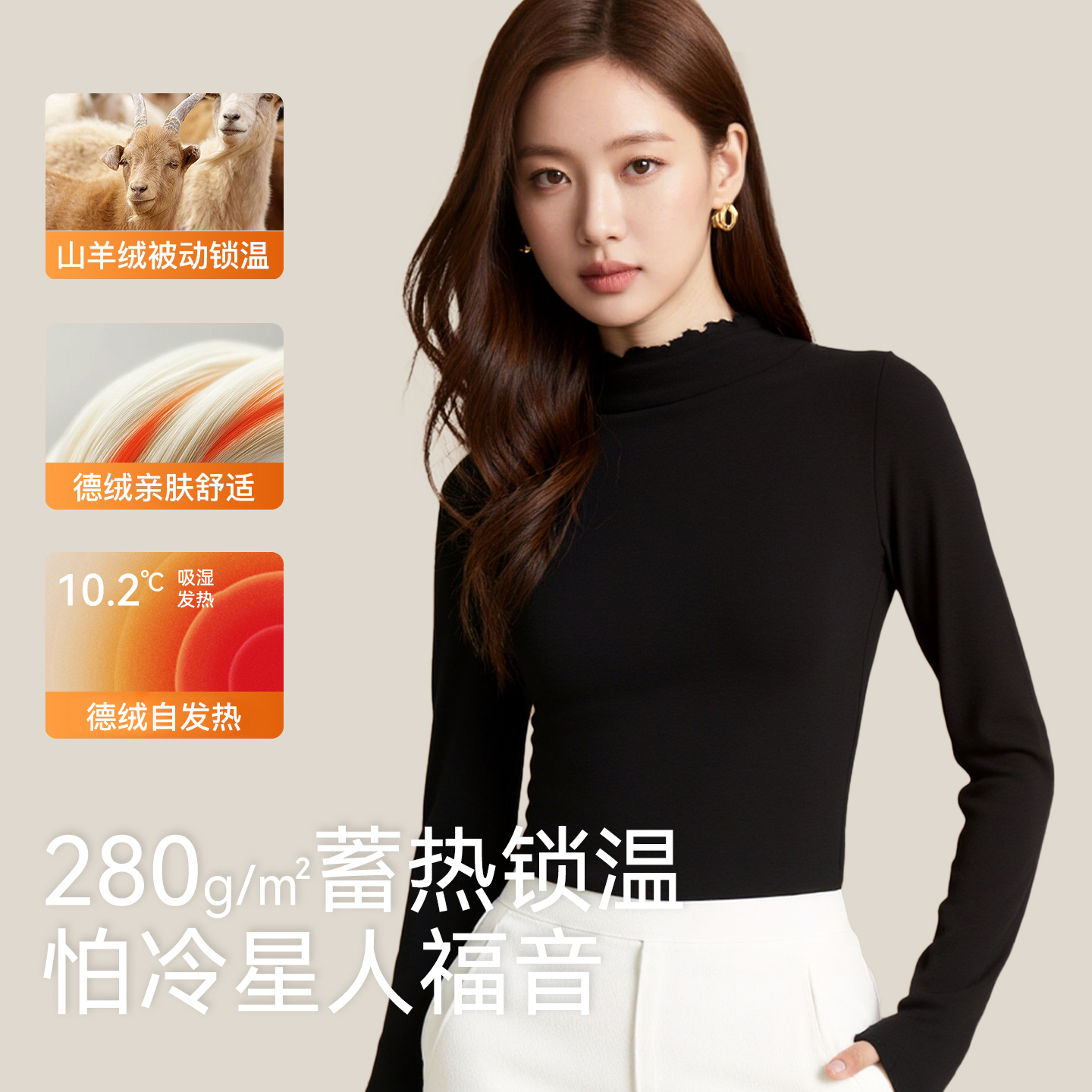 加绒打底衫 内搭可外穿秋衣 女士羊绒蚕丝抗菌发热保暖上衣秋冬修身