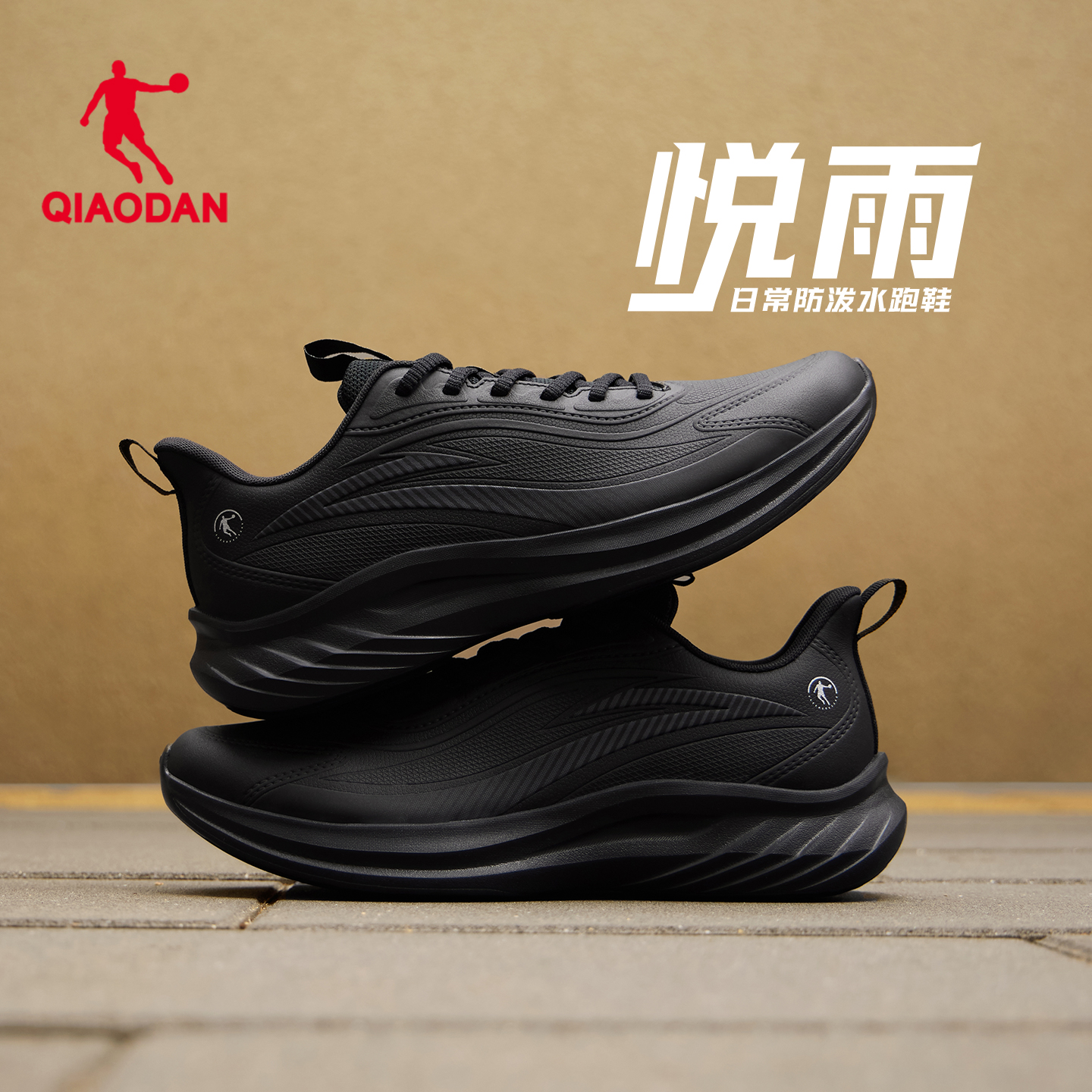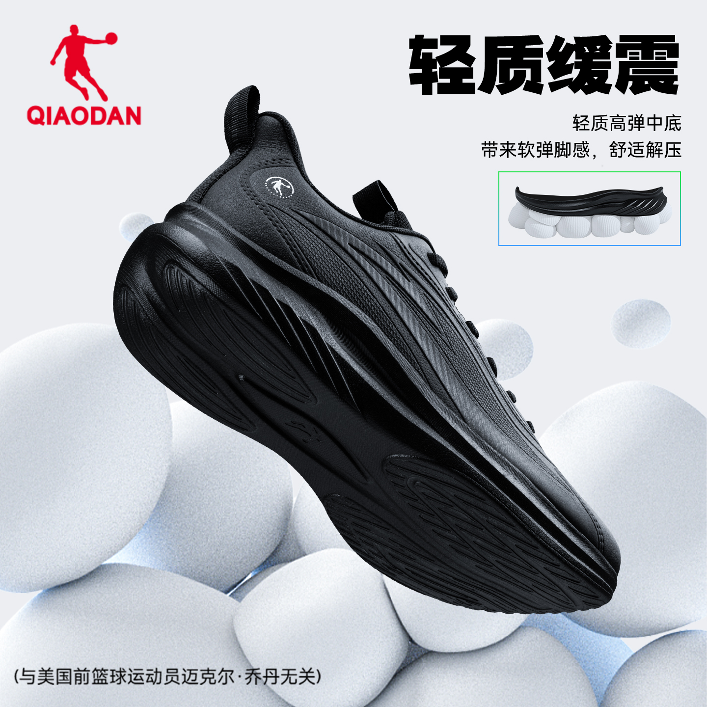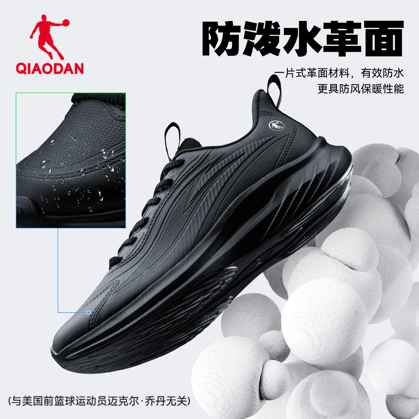 轻便运动鞋 安踏轻质皮面男鞋 革面黑色软底减震防滑跑步鞋 秋季 跑鞋