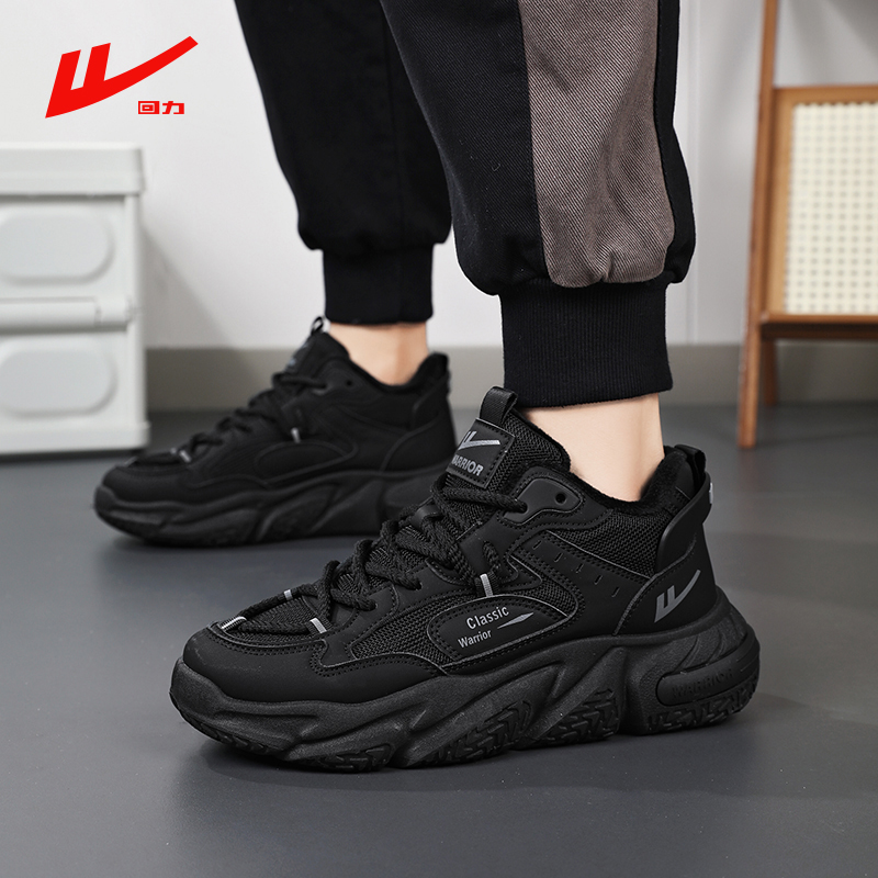 黑色厚底保暖二棉鞋 回力加绒高帮鞋 学生运动老爹鞋 新款 男2025冬季