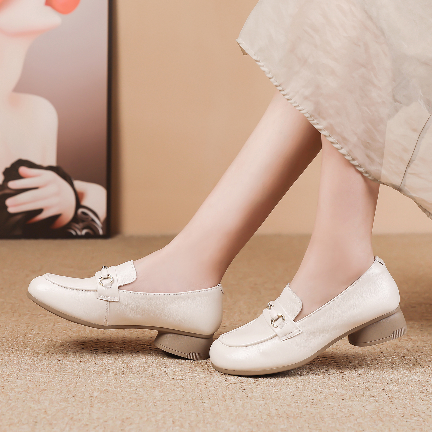一脚蹬小皮鞋 真皮粗跟软底乐福鞋 41到43舒适防滑妈妈单鞋 大码 女鞋
