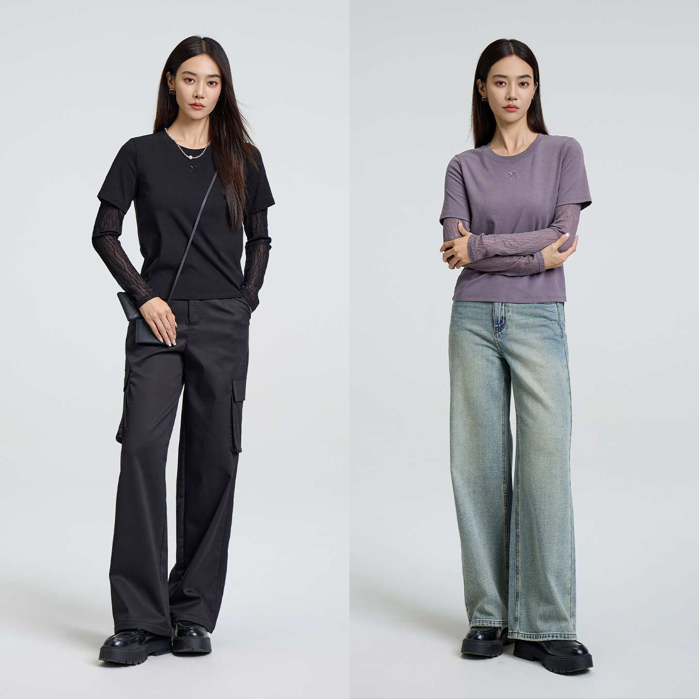 百搭显瘦气质假两件长袖 新款 T恤女上衣 2025冬季 恩瑞妮专柜同款