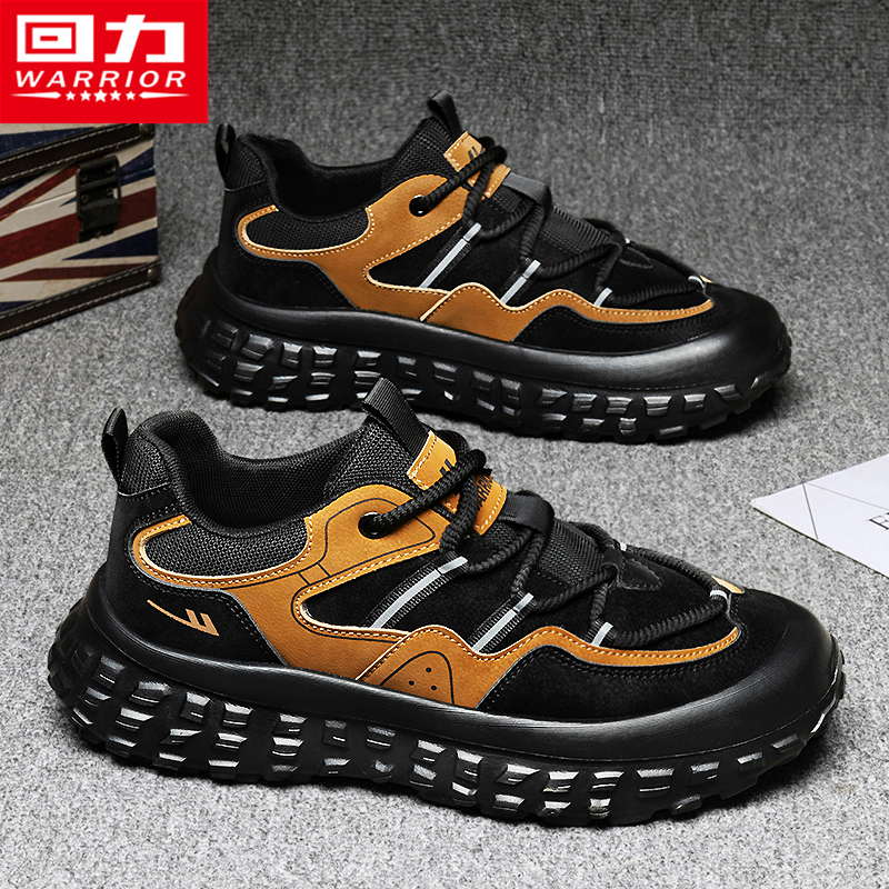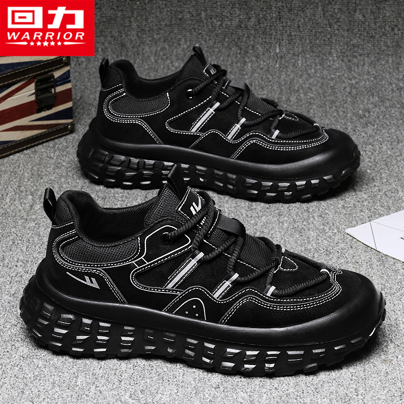 顽刻官方海军蓝春季 校园风W系列翻毛皮帆布拼接男女国潮滑板鞋